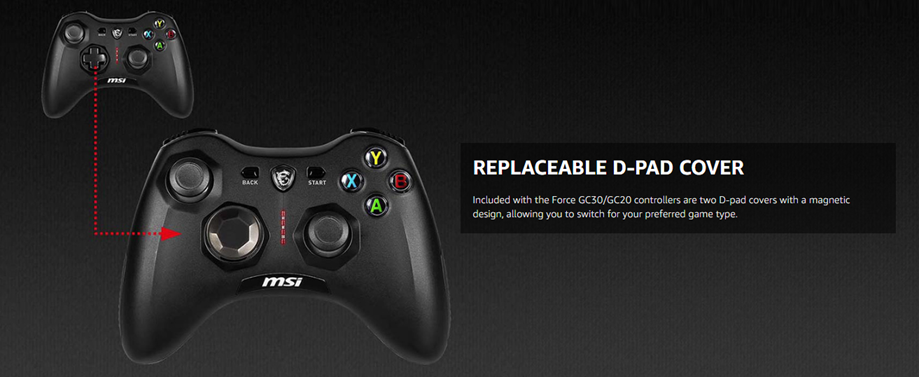 MSI Force GC30V2 Wireless Gaming Controller, Dual Vibration Motors, Dual Connection Modes, Interchangable D-Pads, Compatible with PC & Android