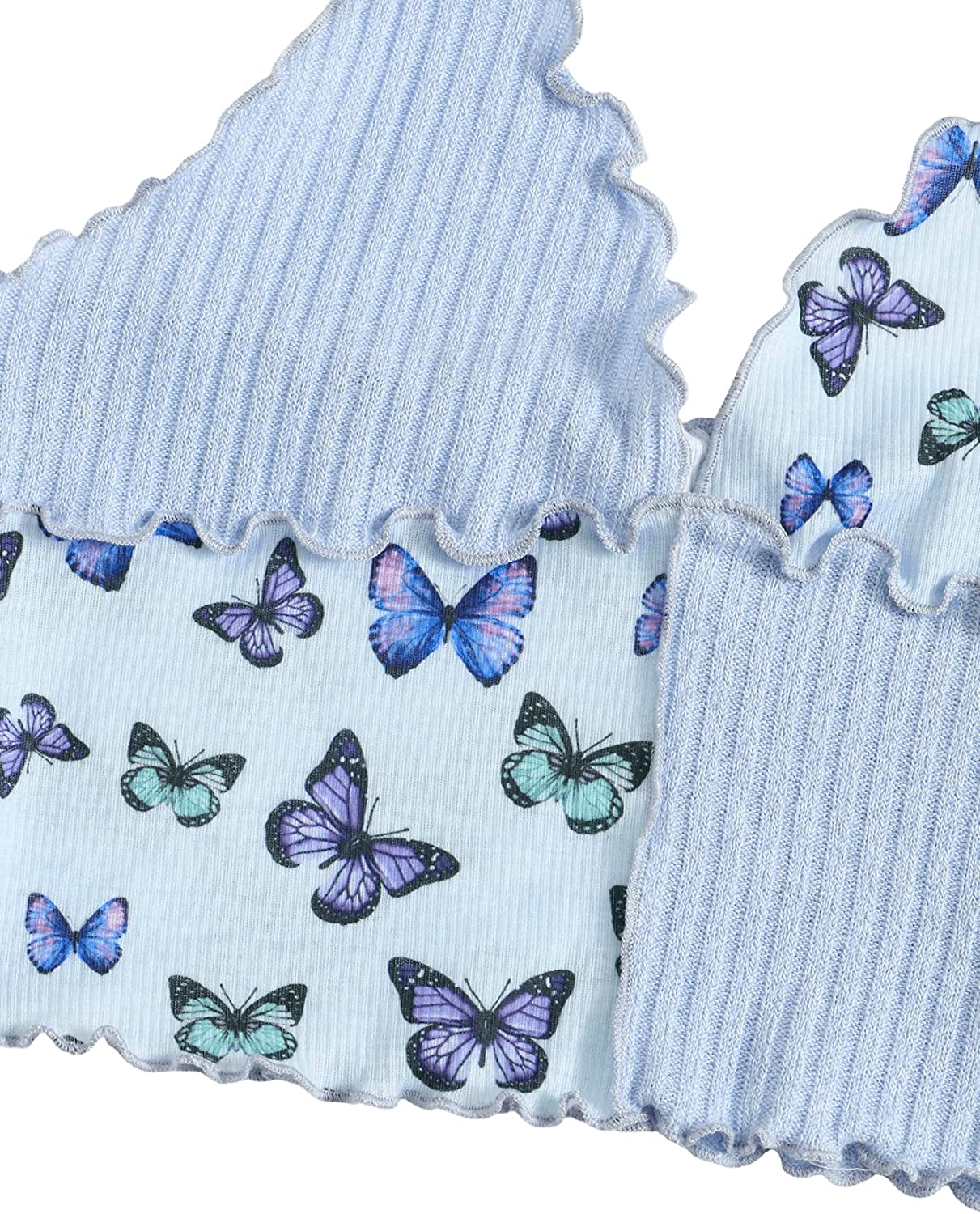 Remidoo Women's Sexy Strap Asymmetrical Neck Cutout Ribbed Knit Slim Fit Cami Crop Top