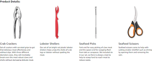 Eating seafood can be challenging. Not only it is often messy, but little nooks of the crab legs or lobster claws prove difficult to scoop the meat out of them. HIWARE Seafood Dining Set includes everything you need to make seafood dining elegant and fun.Our tools, made of heavy-duty die-cast zinc alloy and sturdy stainless steel, are sure to stand up to repeated use by even the most avid seafood fans.