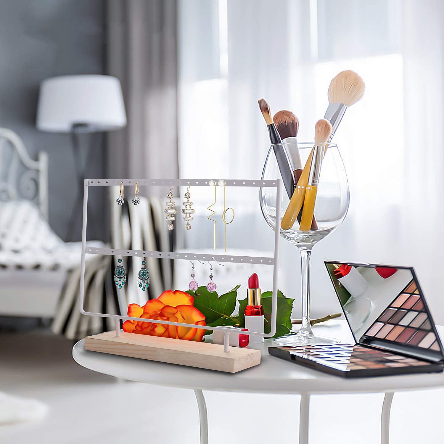 46 Holes FOR EARRINGS- This jewelry rack can hold up to 22 pairs of earrings . You’ll be able to hang up your favourite studs, dangle earrings, and hoops with ease. No longer do you need to worry about losing the backs of your earrings. This holder can accommodate push backs, screw backs, butterfly backs, and locking backs.