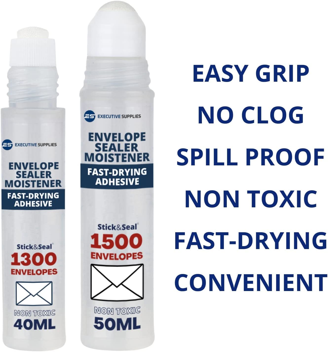 PACK SIZE: Each pack of our envelope moistener contains 5 bottles of quality envelope sealer. 2 bottles each contains 50ml adhesive, enough to safely secure more than 1500 envelopes. The extra 2 bottles each contains 40ml adhesive and can each seal more than 1300 envelopes. (Total 5,6900ML)