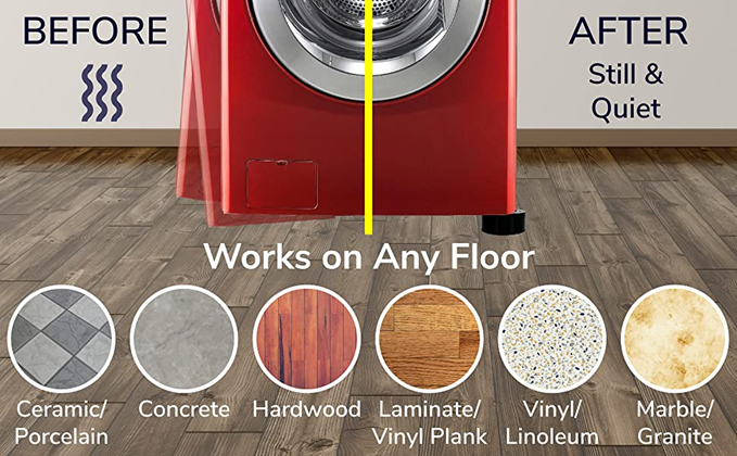 - Protects Floors & Appliances - Absorbs impacts from vibrating appliances to protect floors and the appliance itself from damage.