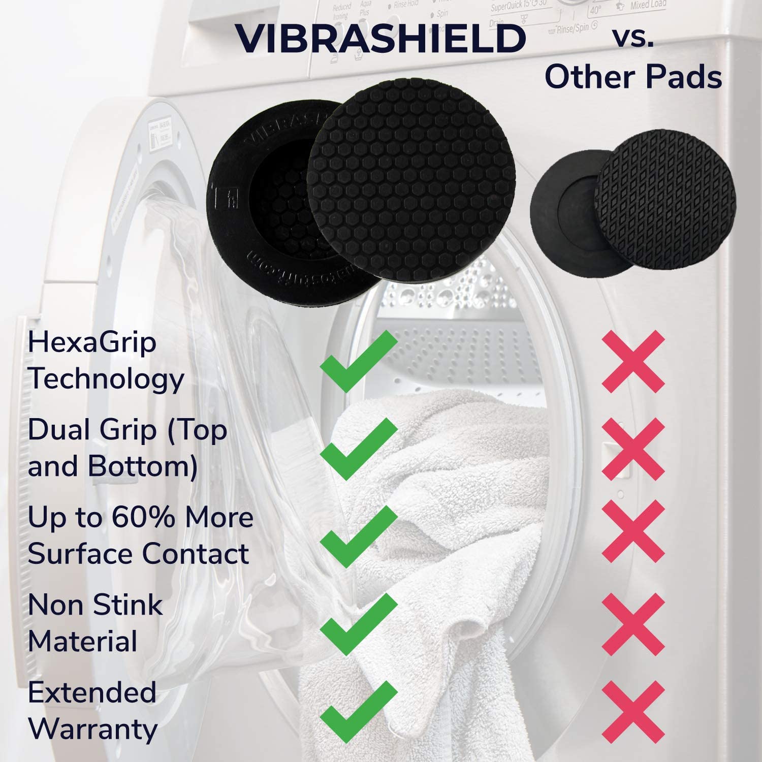 - ? GUARANTEED TO STILL & SILENCE YOUR WASHER ? Buy now confidently based on hundreds of positive customer reviews & ratings; We've got you covered with a no-risk 30-Day Trial and Extended 1 Year Free Replacement Warranty; VibraShield pads are built heavy duty and made to outlast your washing machine; ? WE'RE HERE TO SUPPORT YOU ? Our top notch customer service team is always available to help address any questions or concerns you may have about your anti vibration washing machine support pads