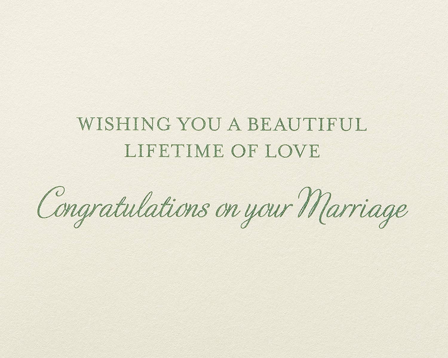 Share special wedding congratulations with a beautiful card by Papyrus! This elegant wedding design features a delicate, hand-painted floral bouquet in soft white and green tones with shimmering metallic foil accents against a crisp white background. The message inside is simple yet heartfelt, with enough space to write a personal message. Wish the happy couple all the best and let them know how much they mean to you with this elegant card only from Papyrus. Card includes matching envelope and gold foil seal.