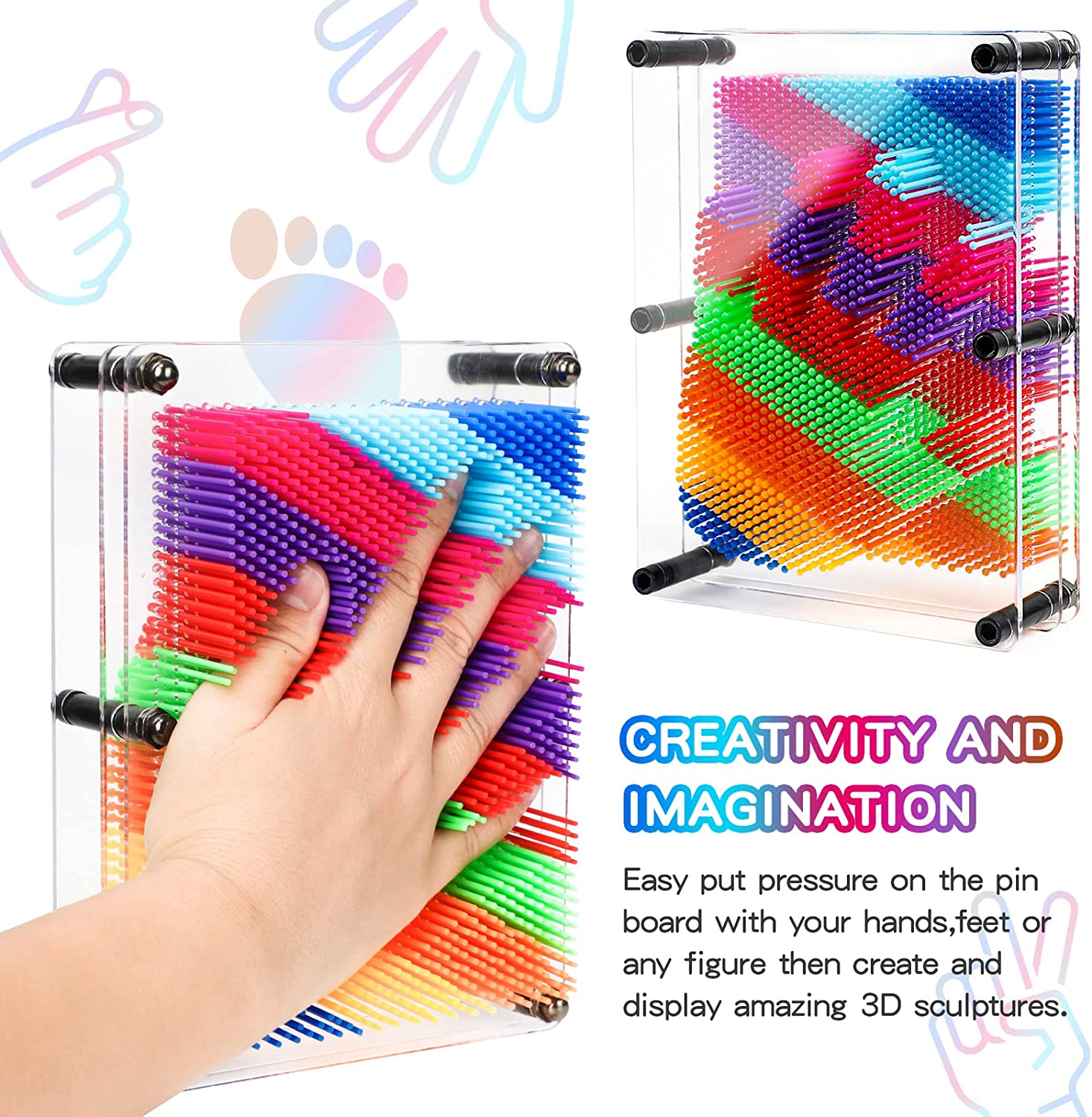 • 【HOT 3D PIN ART TOY】Hand pin toy will bring more happy pastime at home or school playtime. Pin sensory toy is perfect for kids to play with their friend and family members. So this Pin toy impression is nice birthday gifts, christmas gifts, graduation gifts, thanksgiving gifts and etc for family and friends.