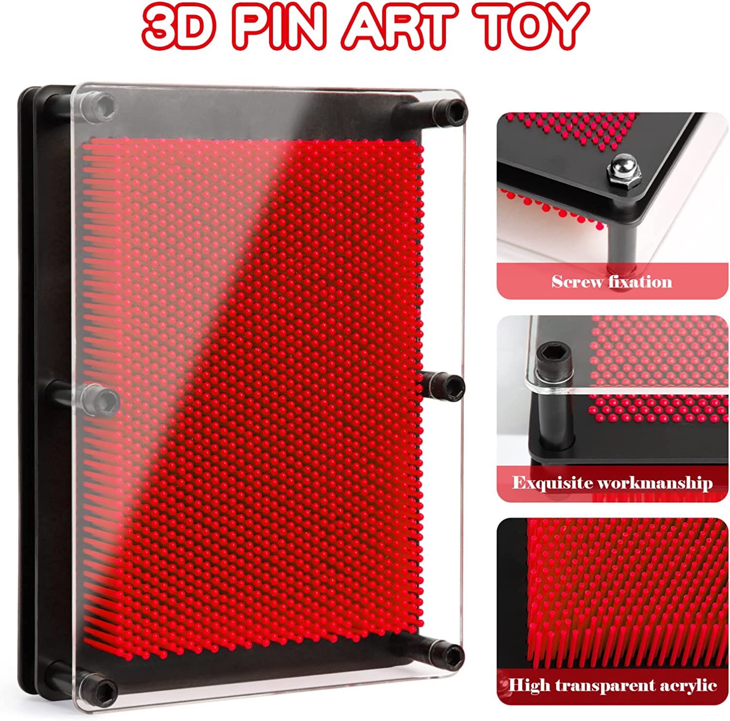 • 【3D PIN TOY】Pin art sensory toy is ideal for kids boys girls, you can press an object into the wall of this pin toy imperssion to leave an impressional profile, like Batman toy statue, dinosaur toys, your handprint or facial contour and so on. Enjsd 3d pin art toy will create inimaginable 3d sculptures, inspiring children's boundless creativity and imagination.