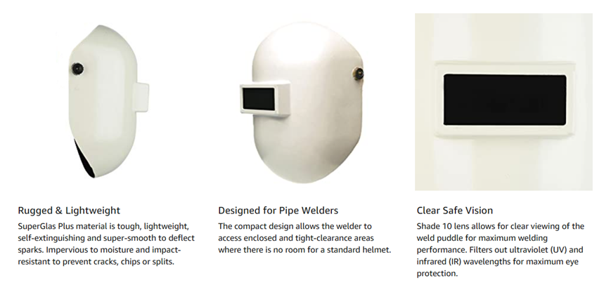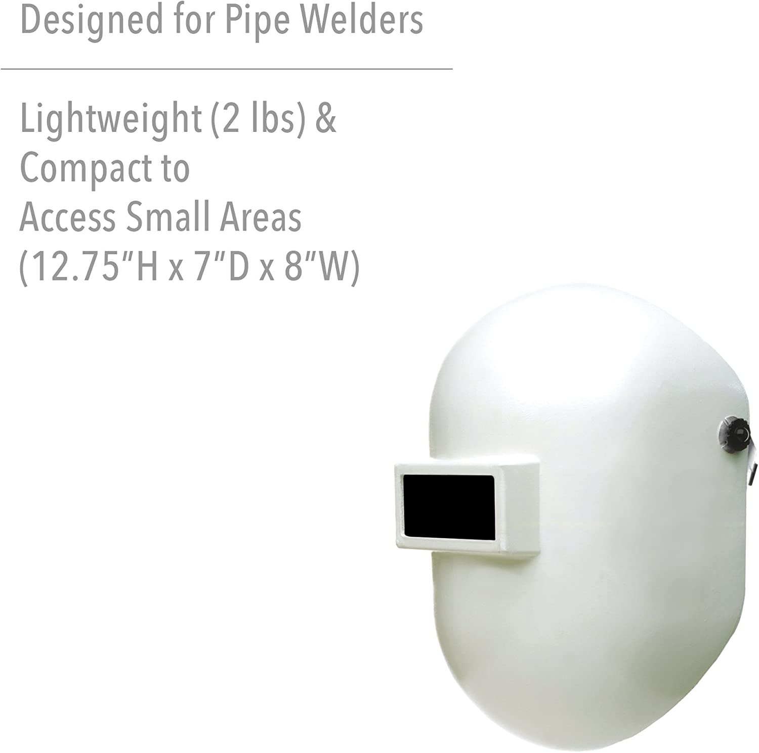 • COMPACT DESIGN: Specifically designed as a pipe welding helmet, the compact design allows access to small spaces and tight clearances where a standard welding helmet won't fit