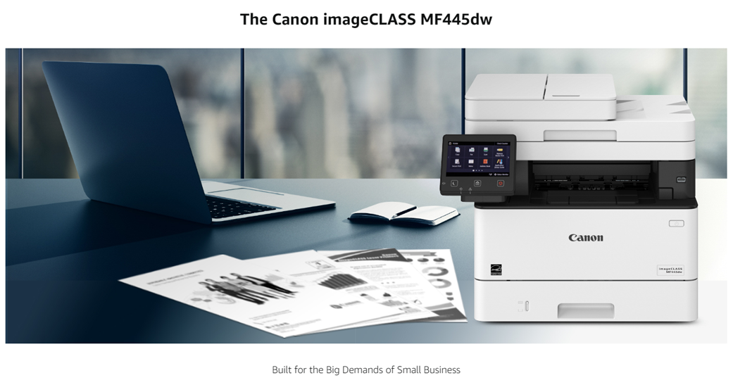 Designed for small and medium-size businesses, the Canon imageclass MF445dw model balances Speedy performance, minimal maintenance, And the ability to add an extra paper tray. A 5" Color touchscreen delivers an intuitive user experience and can be customized by a device administrator to help simplify many daily tasks.