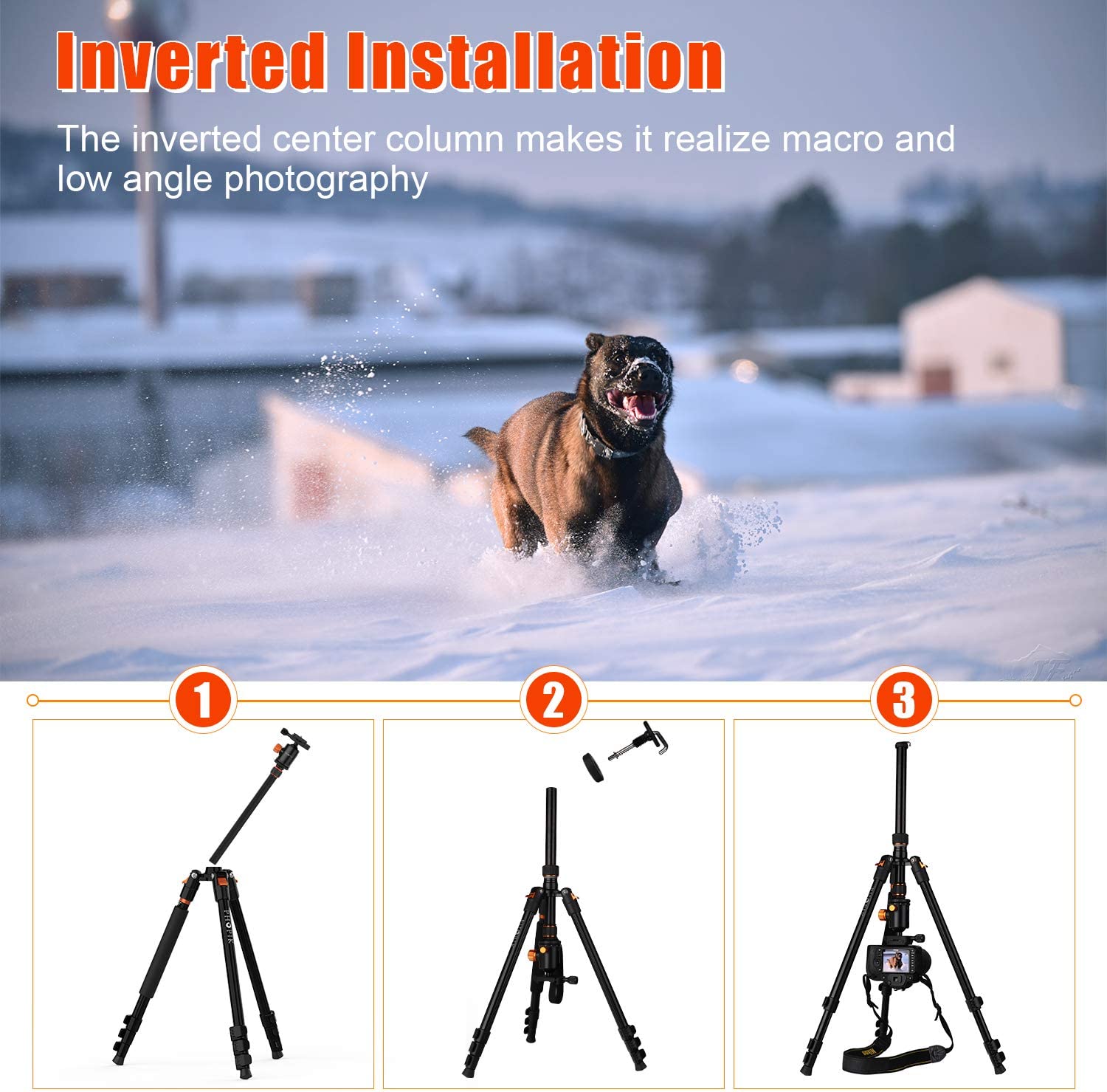 • Lightweight and Portable: The tripod can be folded back 180 ° into a compact size of 19", and weighs only 3.75lbs. It comes with an adjustable shoulder bag so you could take it easily anywhere for various photography.