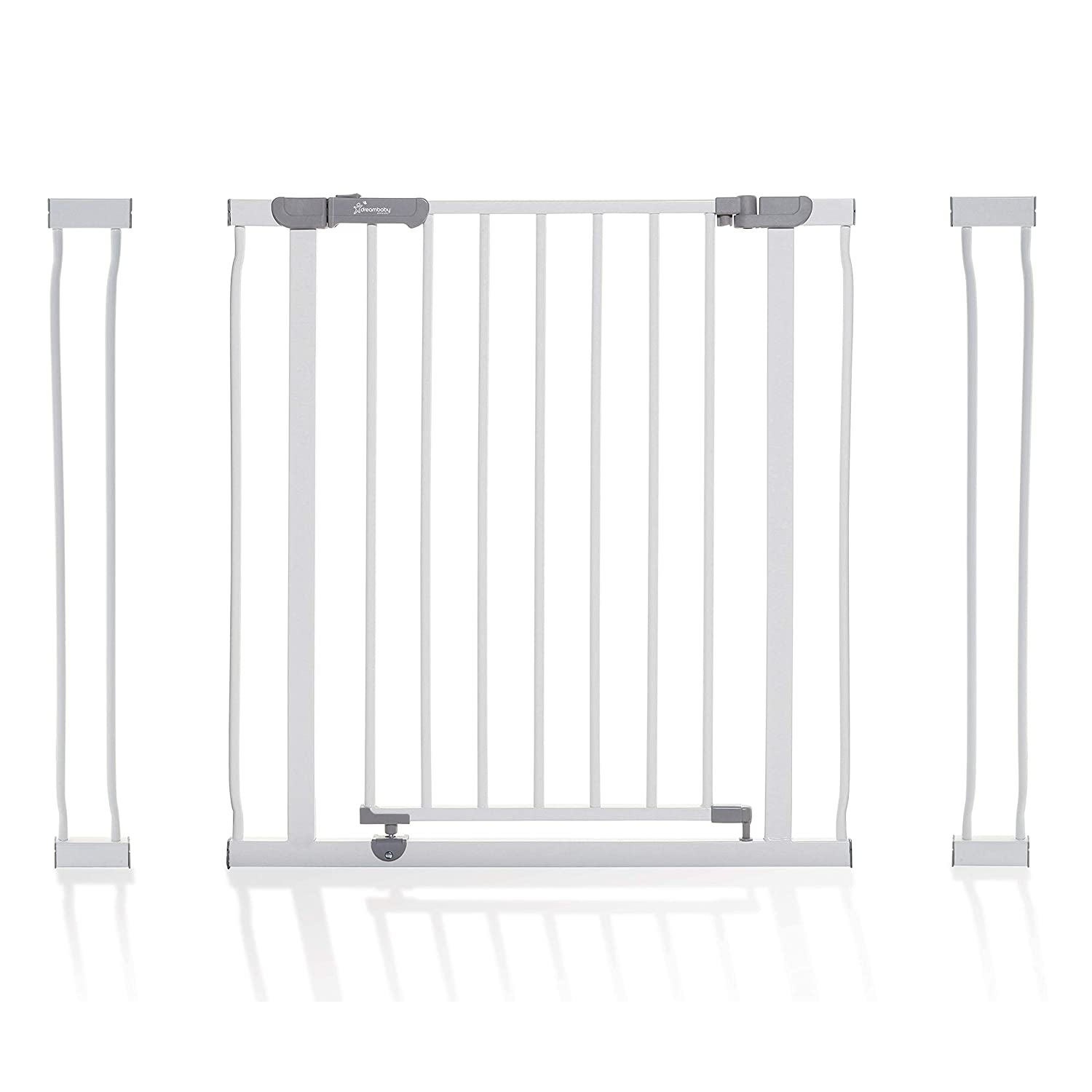 Dreambaby Ava Walk Thru Baby Safety Gate & Extension Set | Pressure Mounted Gate with Stay Open Features | Includes 2 x 3.5" Wide & 30" Tall Extensions | Fits 29.5-39.5 inch Openings - White