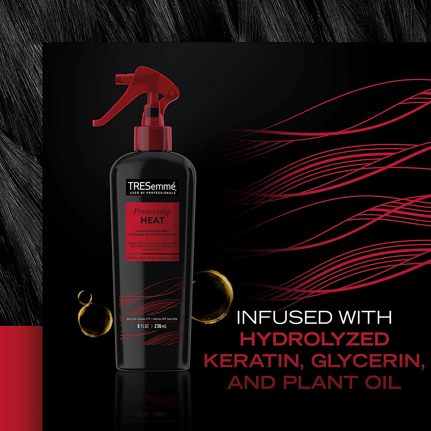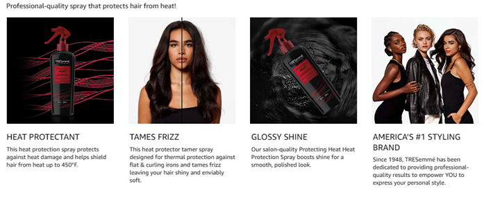 • SHIELDS HAIR AND SEALS IN SHINE: TRESemmé Protecting Heat Spray works as a heat protector and stands up to flat irons and curling irons by guarding against heat damage and friction