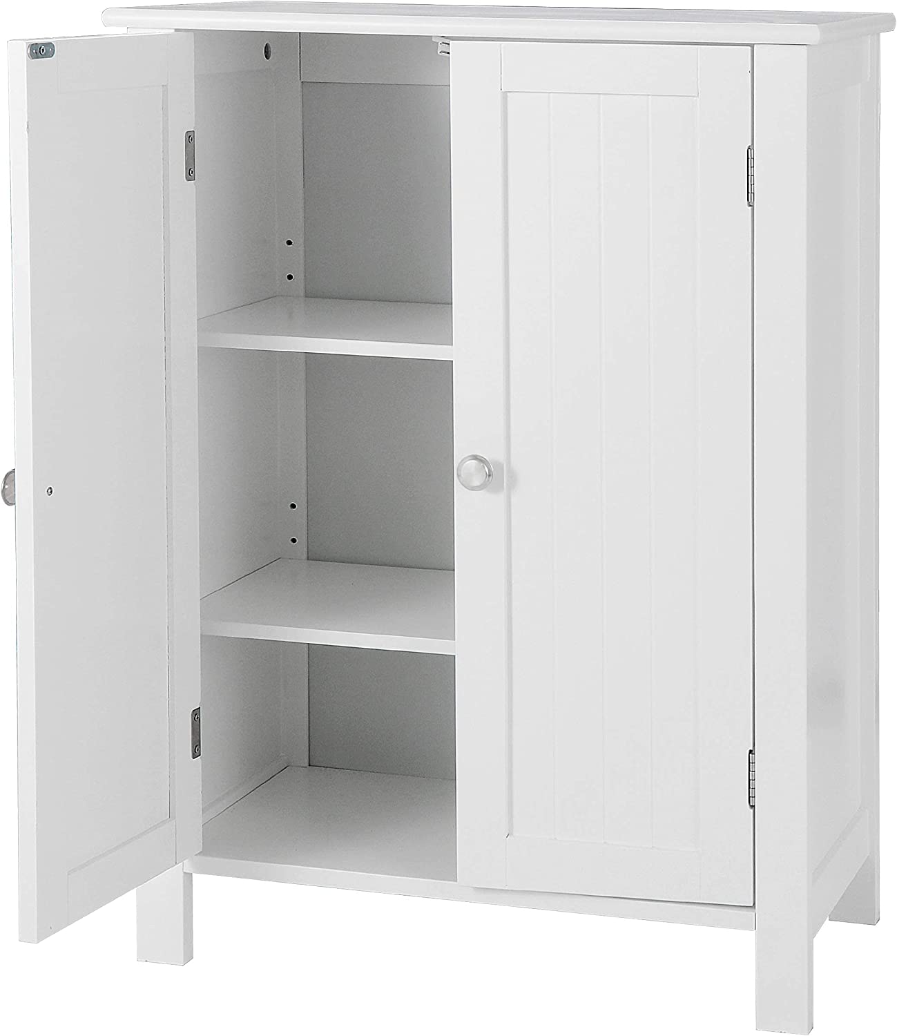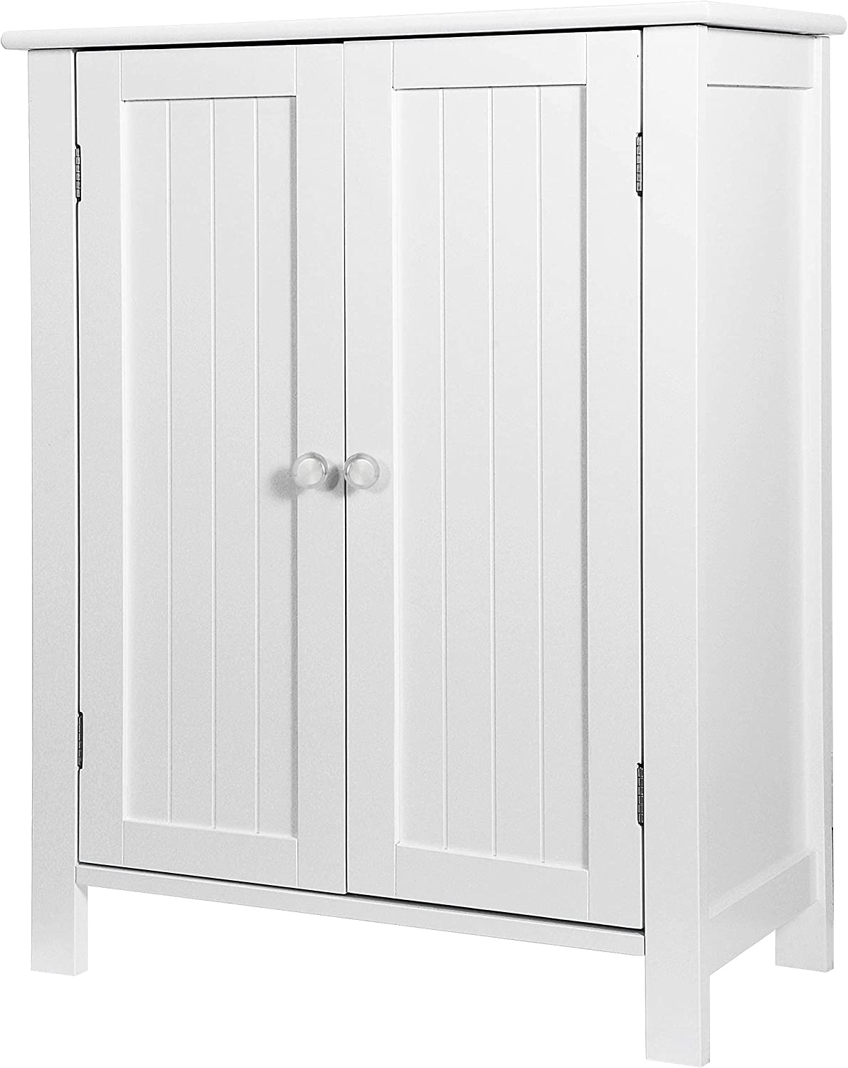 ZENY Bathroom Floor Storage Cabinet with Double Door + Adjustable Shelf, Wooden Organizer Cabinet for Living Room, Bathroom, Bedroom, Modern Home Furniture, White