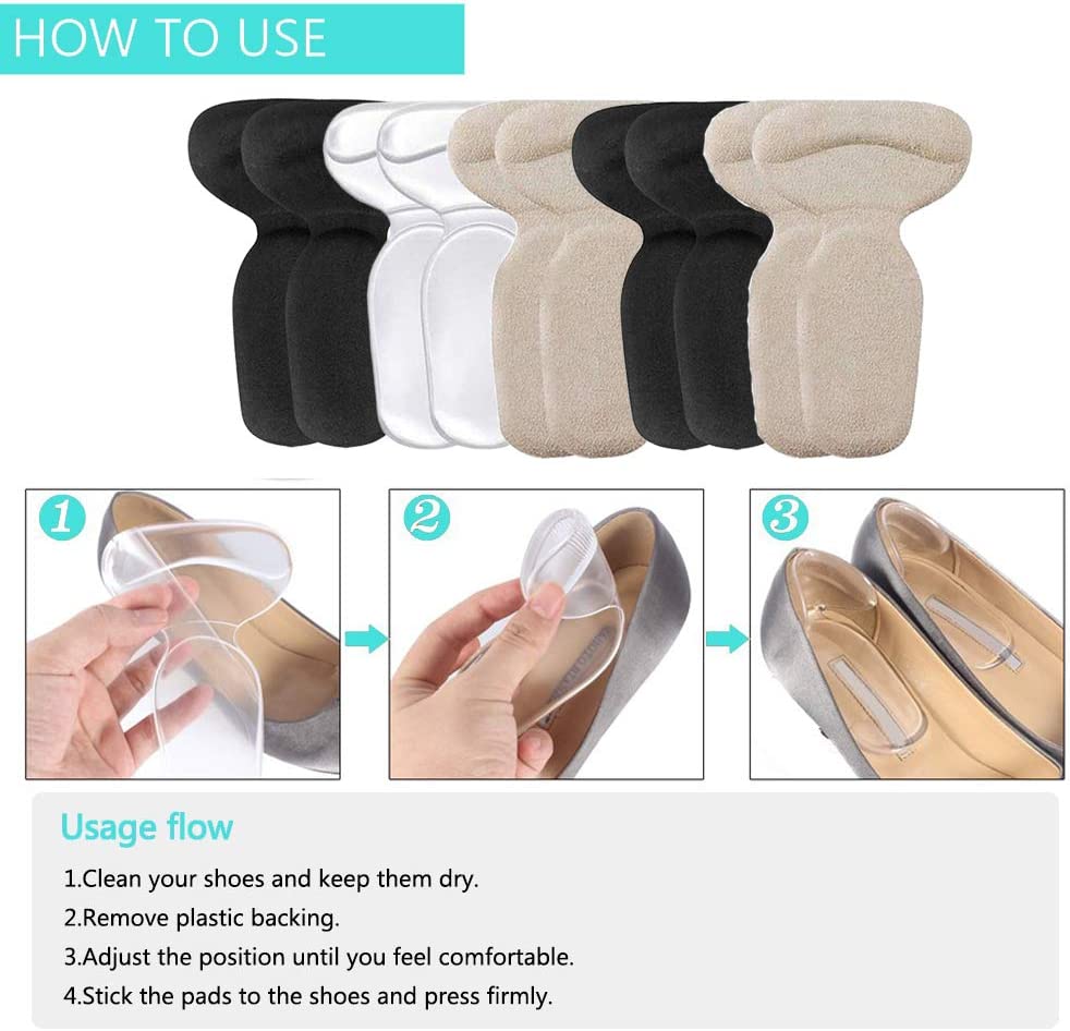 Sticky Design:Heel Pads have strong sticky backing that keeps them in place firmly. You can remove the adhesive backing and place the pads in the inside heel of shoes. Fixed for a while.