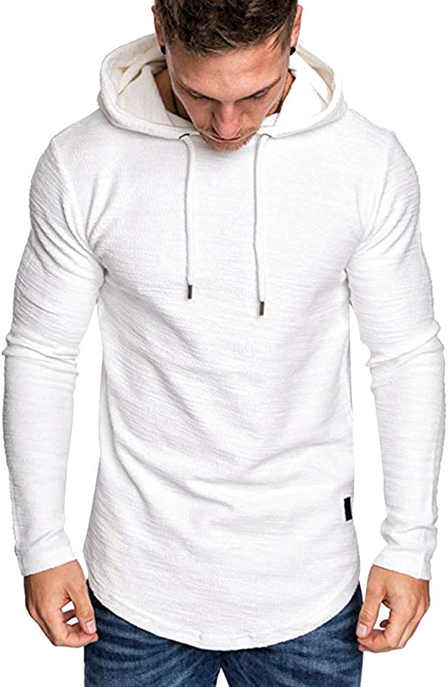 Mens Fashion Athletic Hoodies Sport Sweatshirt Solid Color Fleece Pullover