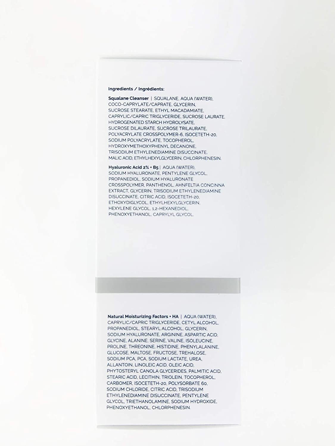 sturizing Factor componeSqualane Cleanser is a gentle cleansing product formulated to target makeup removal while leaving the skin feeling smooth and moisturized. Hyaluronic Acid 2% + B5’s formulation combines low, medium, and high molecular weight hyaluronic acid, as well as a next-generation H.A. crosspolymer at a combined concentration of two percent for multi-depth hydration. This system is supported with the addition of B5 for enhanced hydration. Natural Moisturizing Factors offers non-greasy hydration that acts as a direct topical supplement of Natural Moints.