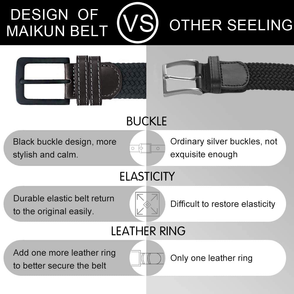 Q: Will this elastic belt be too tight to be uncomfortable? A: Of course not. The tightly braided web belt is heavy and thick for strength and comfort. With this simple pin buckle and elasticated design, you can fix the firmly at any length. Essential accessory fits in well with any types of jeans, trouser and pants.