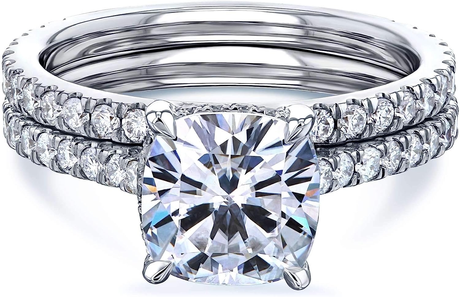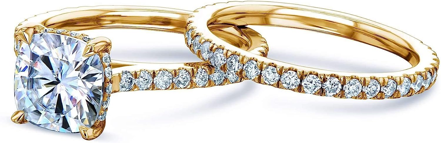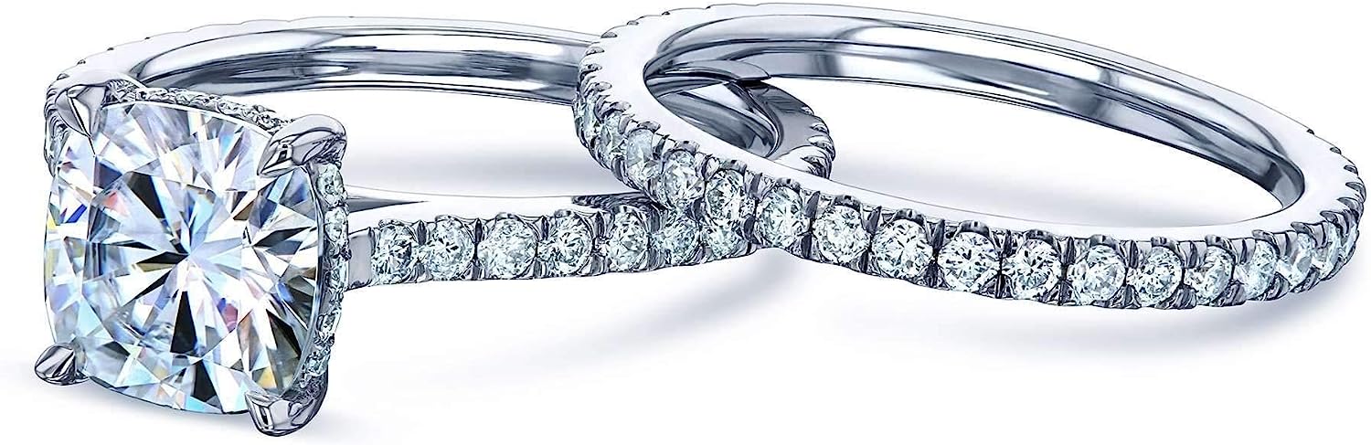Kobelli 2ct Cushion Moissanite Drop Halo Bridal Set (HI/VS)