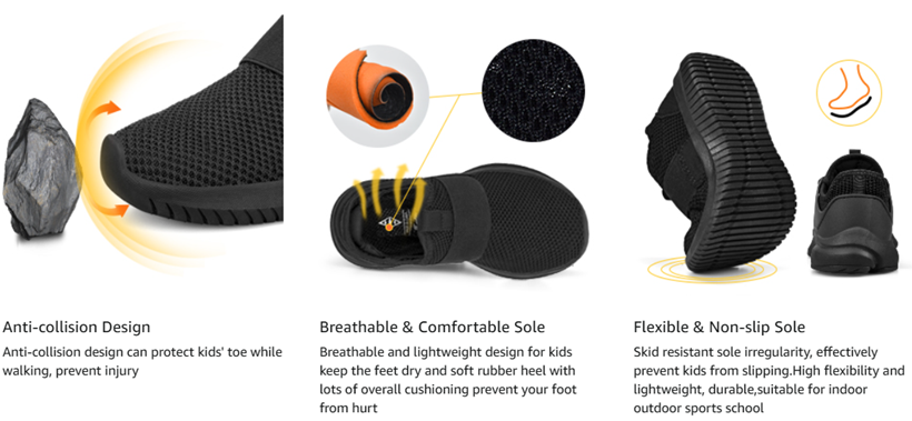 Non-slip features:The rubber outsole can anti-slip performance, and ensure the safety of kids.
