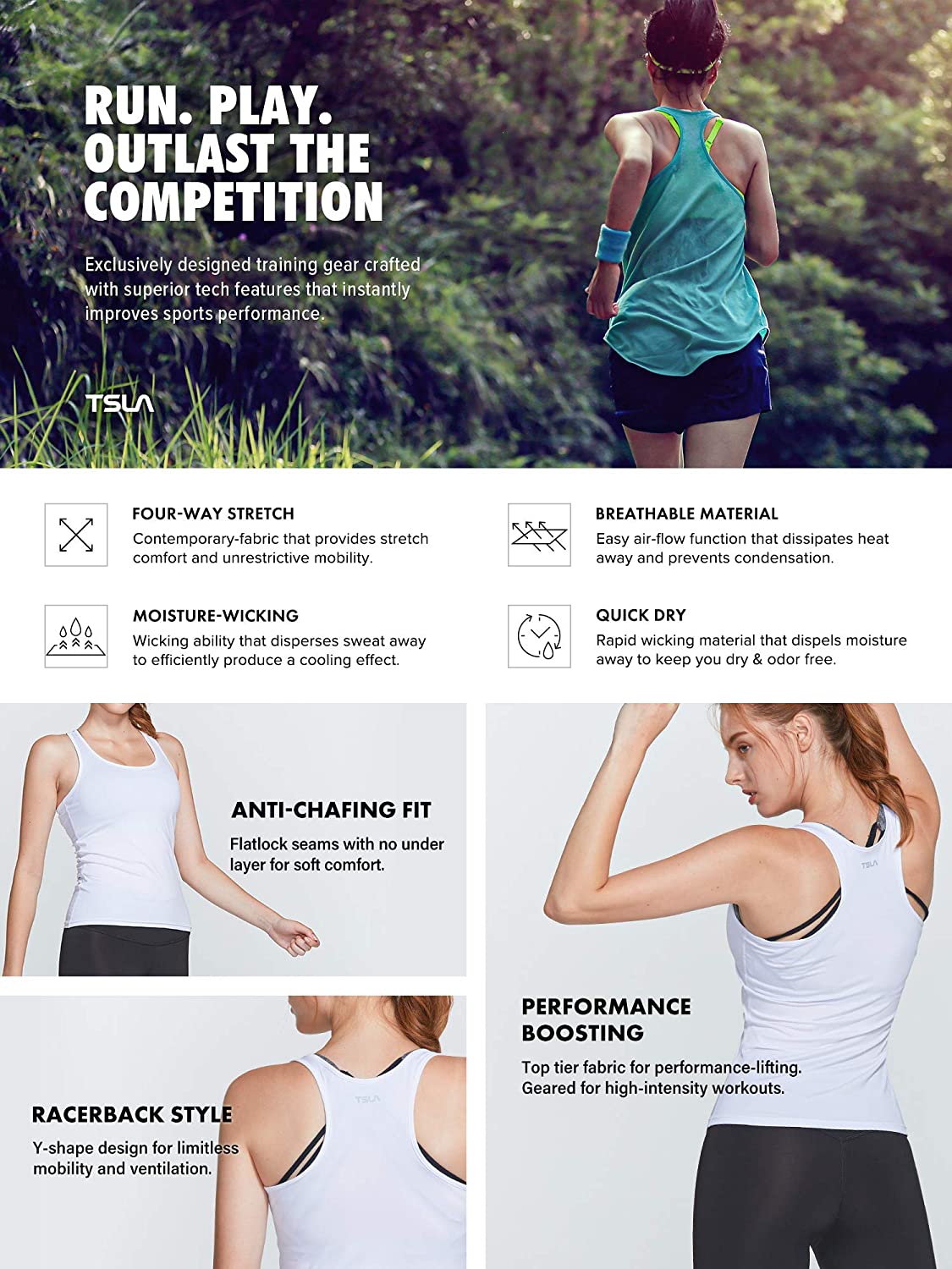 TSLA Women's Workout Tank Tops, Athletic Exercise Gym Yoga Tank Top, Active Dry Fit Running Summer Tanks