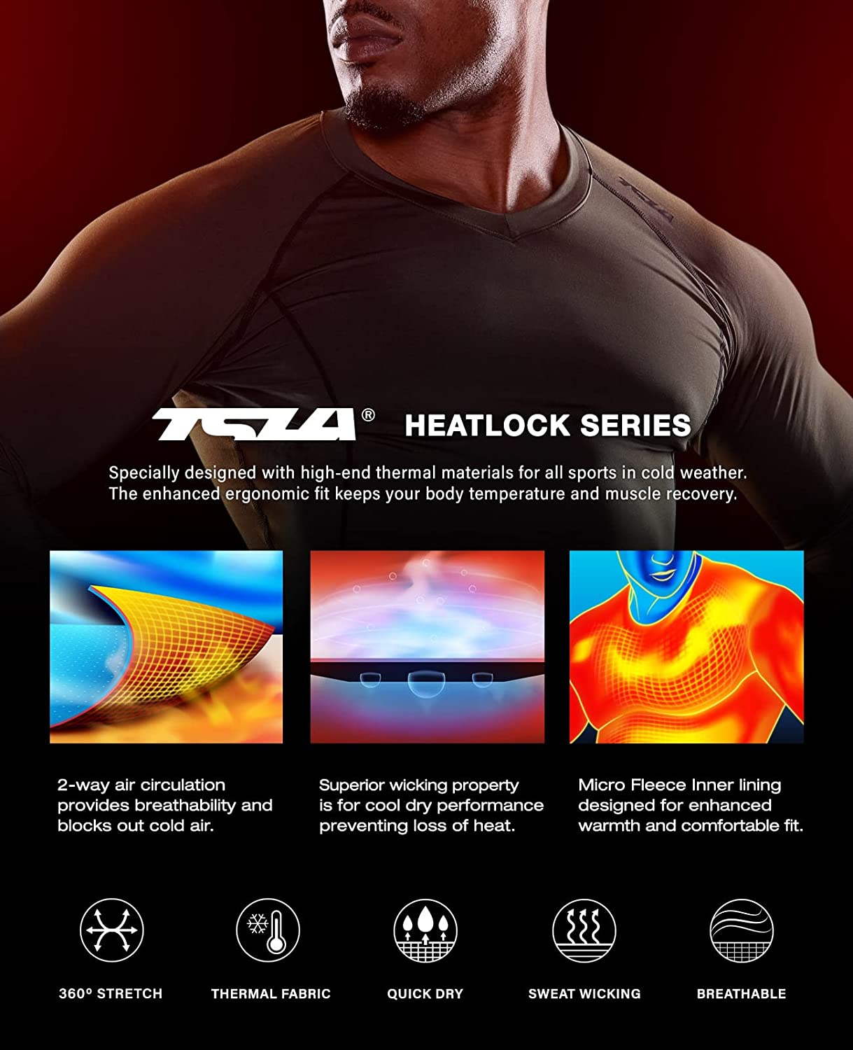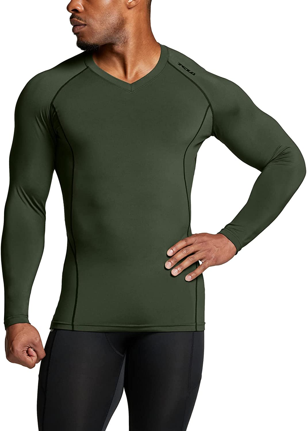 TSLA Men's Thermal V-Neck Long Sleeve Compression Shirts, Athletic Base Layer Top, Winter Gear Running T-Shirt