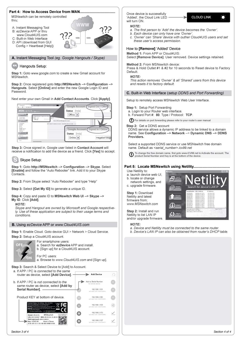 Configure & Control Remotely Over the Internet via ezDevice Smartphone App, Cloud4UIS Web Service, any Web Browser, Skype or Google Hangouts/Chat