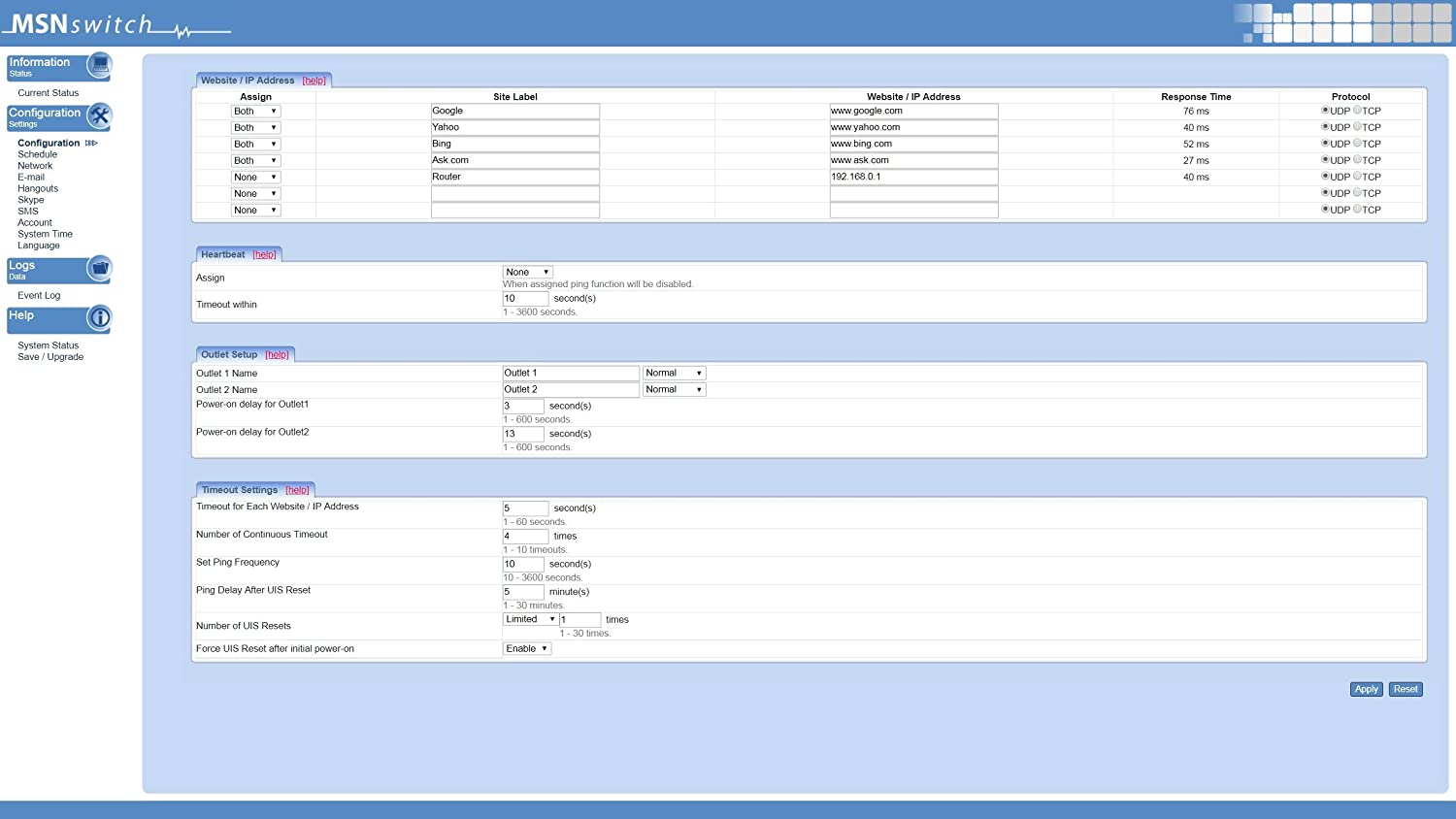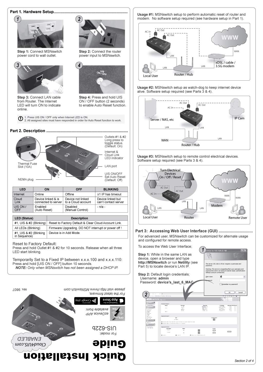 MSNSwitch Internet Enabled IP Remote Power Switch with Reboot - Control via Smartphone App, Cloud Service, Web Browser, Skype or Hangouts - 2 Independent AC Power Outlets (Model UIS-622b)