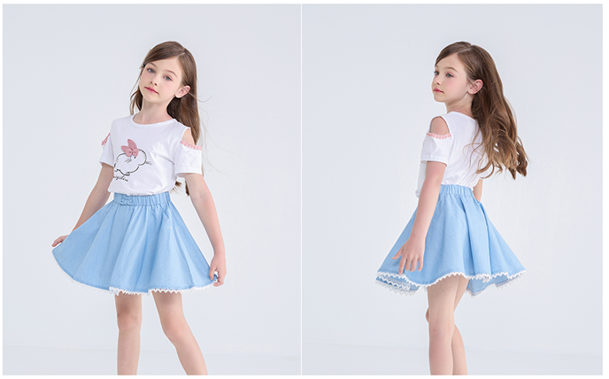 These fashion girls blue jean skirt for little big girl are featured with elastic waistband and that ensures a secure fit for a busy day of play.