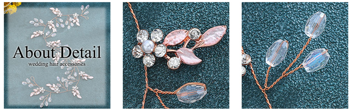 Rose gold leaves hair accessories in unique design and excellent workmanship, made of flowers, crystals, rhinestones, and alloy.