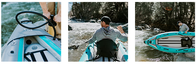 - High Pressure Drop Stitch Floor – Rivals the feel of a hard kayak, but much lighter! It provides rigidity, responsiveness and stability over traditional low pressure inflatable kayaks.