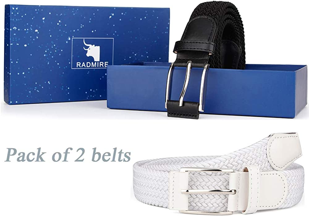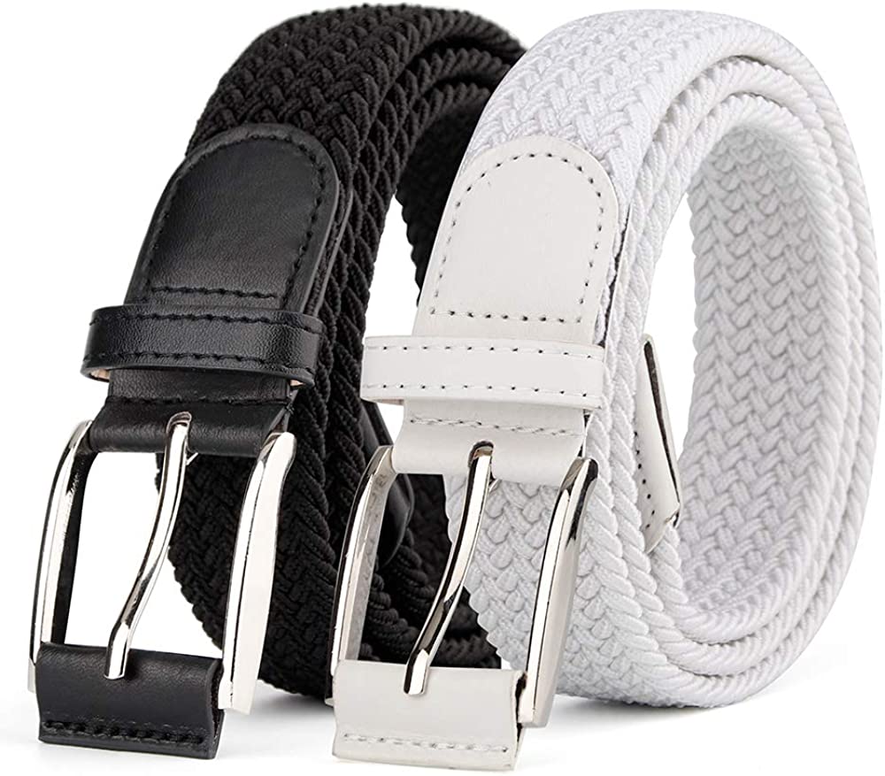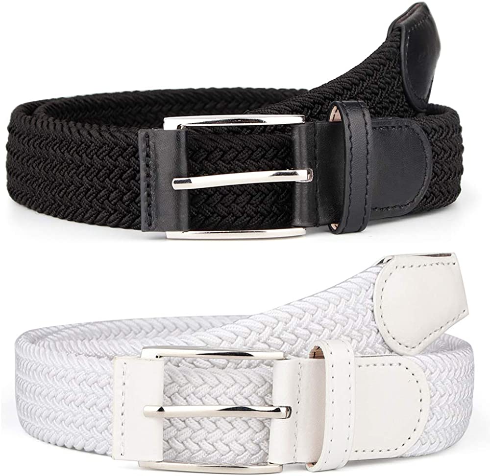2 Pieces Braided Woven Elastic Stretch Canvas Belts for Men Women