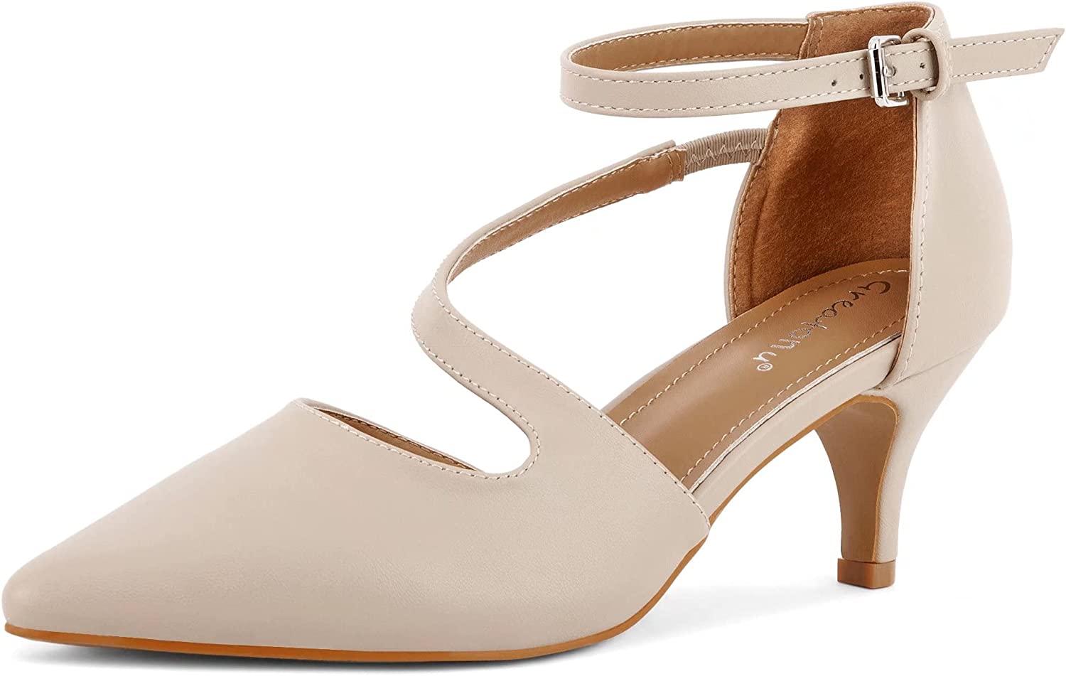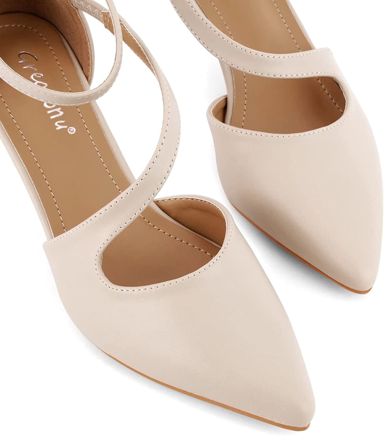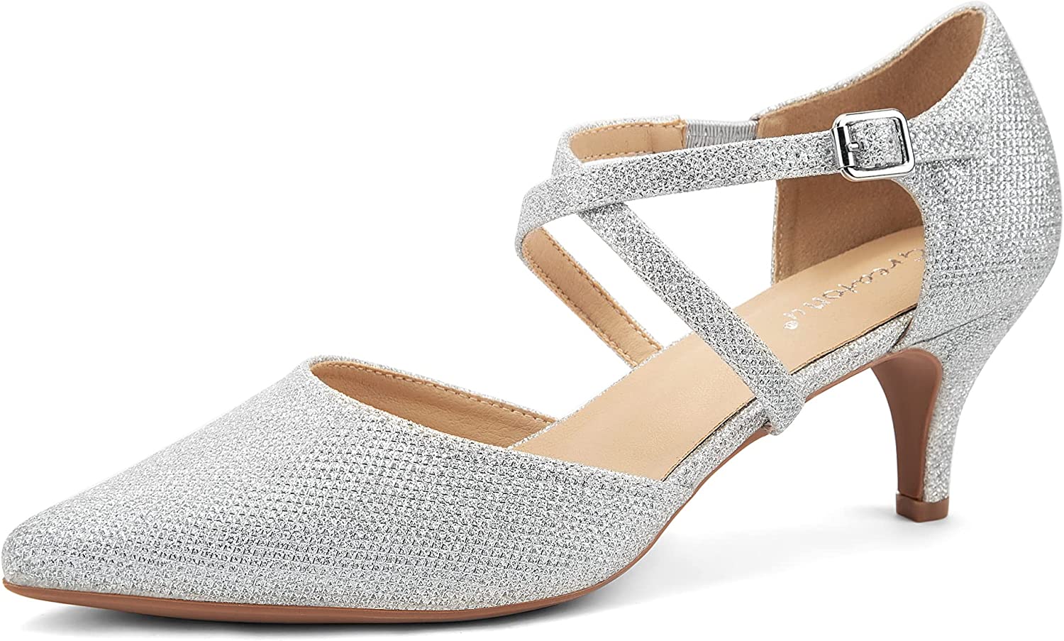 Greatonu Women's Low Heel Pumps Pointed Toe Bridal Wedding Party Kitten Heel Pump Shoes