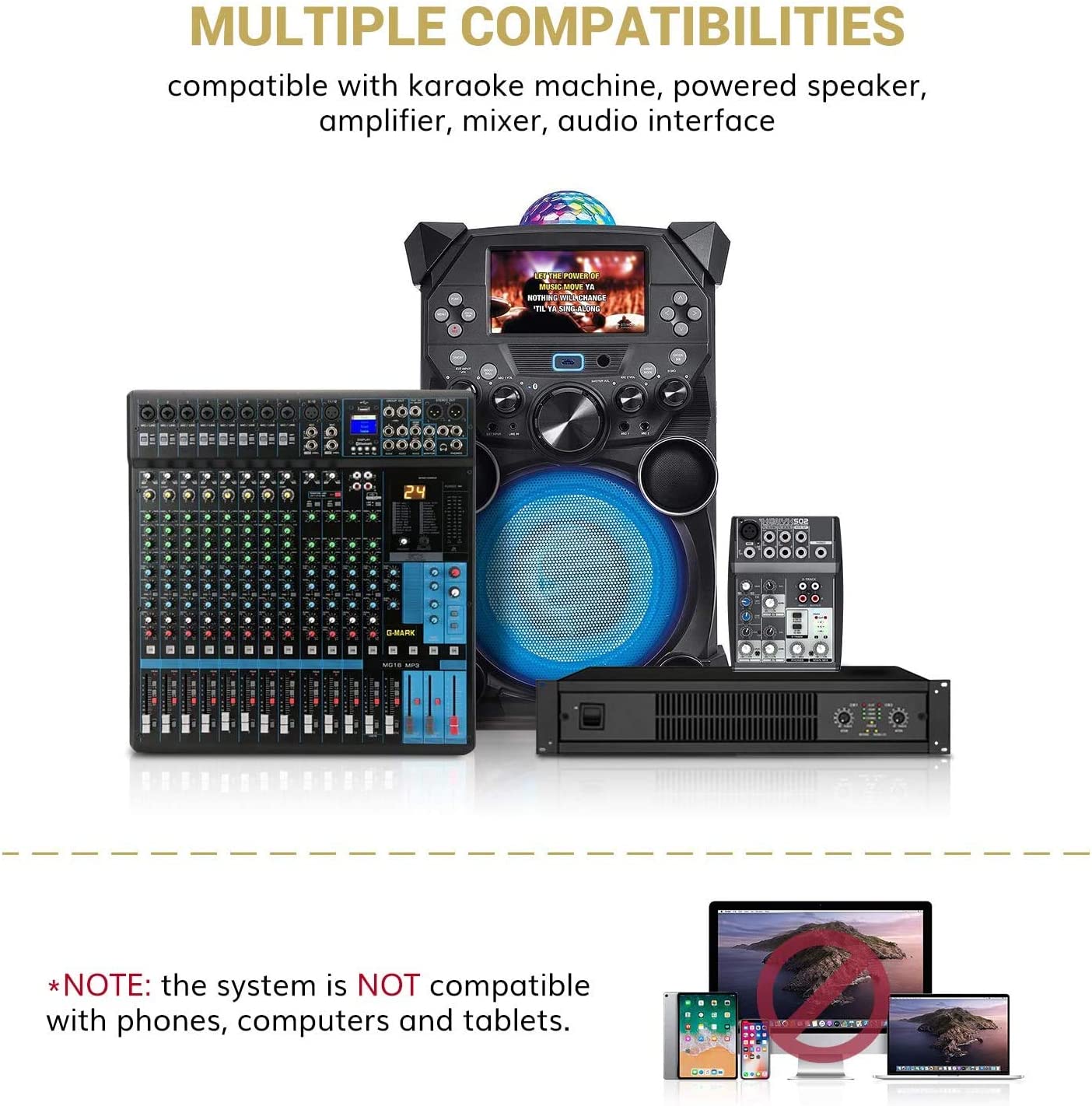 Compatibility: Excellent signal stability, compatible with powered speaker, karaoke machine, amplifier, mixer, and audio interface. (NOTE: the system is not compatible with phones, computers, or tablets.)