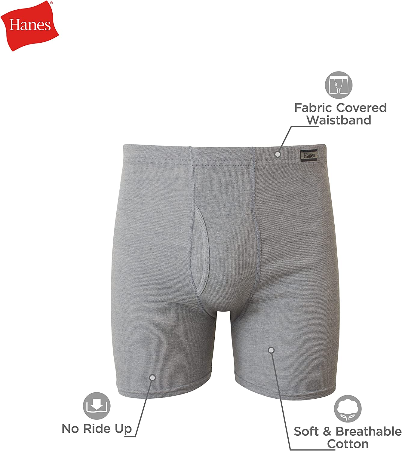 QUALITY FABRIC - Hanes' best boxer briefs are made of 100% cotton (heather gray: cotton/polyester blend)