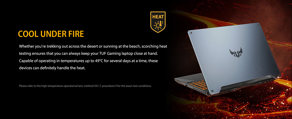 ASUS TUF Gaming TUF506 is a powerful Windows 10 gaming laptop that combines gaming performance with up to a narrow bezel 144Hz IPS-type panel and an extended lifespan, thanks to its patented Anti-Dust Cooling (ADC) system. Equipped with NVIDIA GeForce graphics, octa-core AMD Ryzen processor, and solid-state storage. TUF506 is able to play the latest games and multitask with ease. TUF506 features one of the fastest Wi-Fi standards available — the latest Intel Wave 2 Wi-Fi 5 (802.11ac) boasts data transfer rates of up to an incredible 1.7Gbps. To top it all off, it’s RGB backlit gaming keyboard is rated at 20-million keystroke durability.The actual transfer speed of USB 3.0, 3.1 (Gen 1 and 2), and/or Type-C will vary depending on many factors including the processing speed of the host device, file attributes and other factors related to system configuration and your operating environment.