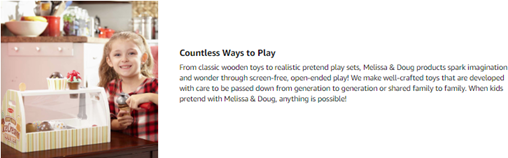 • “THE GOLD STANDARD IN CHILDHOOD PLAY”: For more than 30 years, Melissa & Doug has created beautifully designed imagination- and creativity-sparking products that NBC News called “the gold standard in early childhood play.”