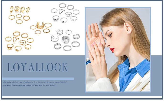 • MIDI RING SIZE--The Midi Ring Size is about 4-16,The Rings Vary from Midi to Regular Size, Fit Your Each Finger, Each One Comes with Different Sizes on Every Design.Bohemian knuckle rings with different finger circumferences can match your different daily lives. You can use the LOYALLOOK ring as knuckle, midi ring, stackable ring, finger ring, vintage ring, joint ring, bohemain ring.