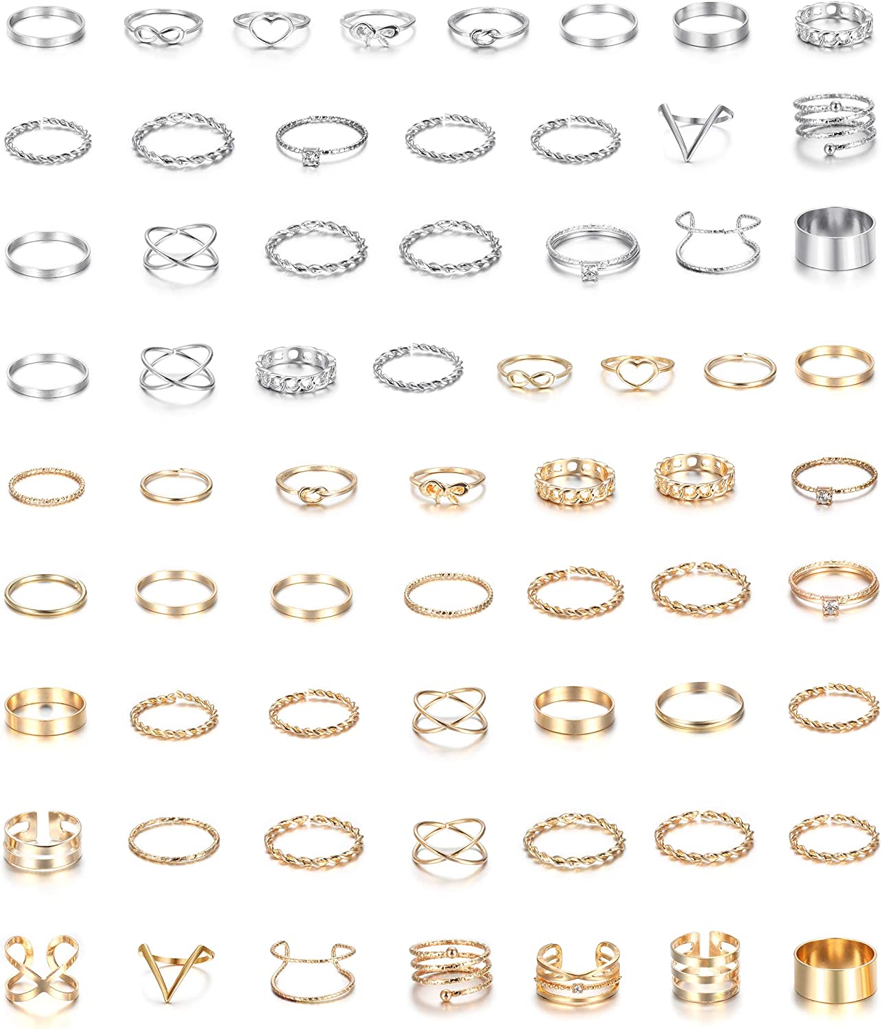 • AFFORDABLE KNUCKLE RING--You can get 65 vintage stackable rings of different styles in one order, to meet your different daily needs,We have bow ring, rhinestone ring, infinite symbol ring, hollow ring, open ring, tear drop ring, twist ring, geometric pattern ring, irregular symbol ring and so on,a variety of fashion styles for you to choose.