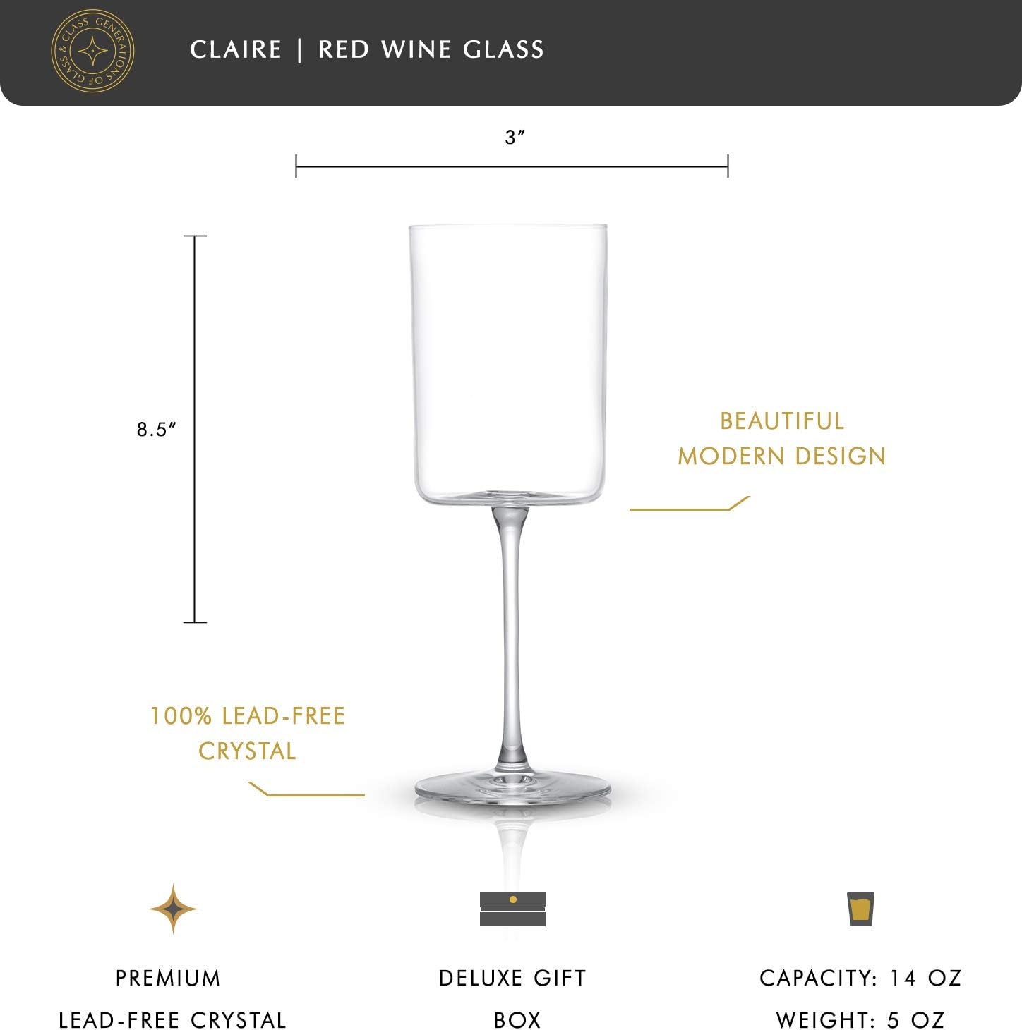 • MODERN DESIGN: The Claire tall wine glasses come with an ultra-elegant, modern design, having large rims and slender stems. The crystal body is shaped like a perfect cylinder, adding a sparkly note to your favorite wine.