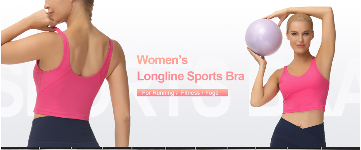 Women’s Longline Sports Bra Wirefree Padded Medium Support Yoga Bras Gym Running Workout Tank Tops
