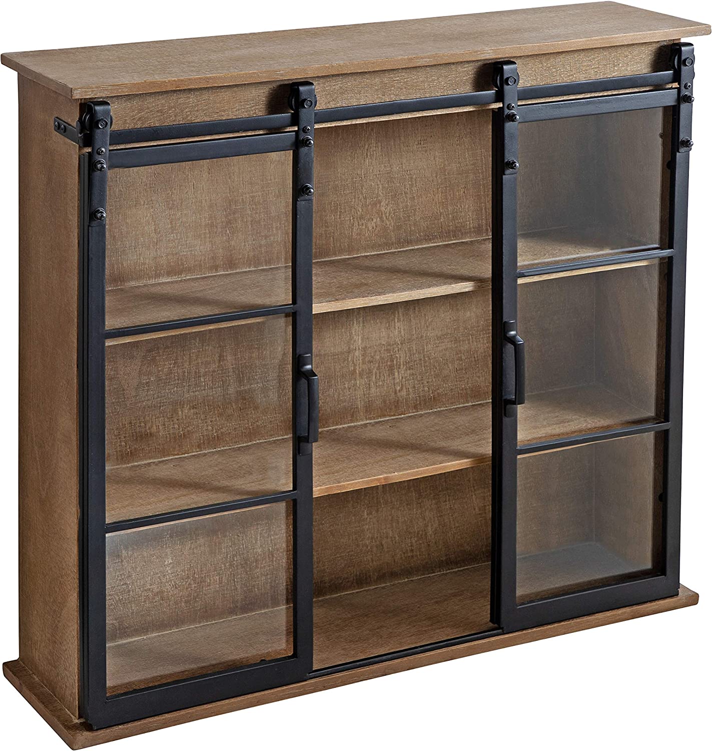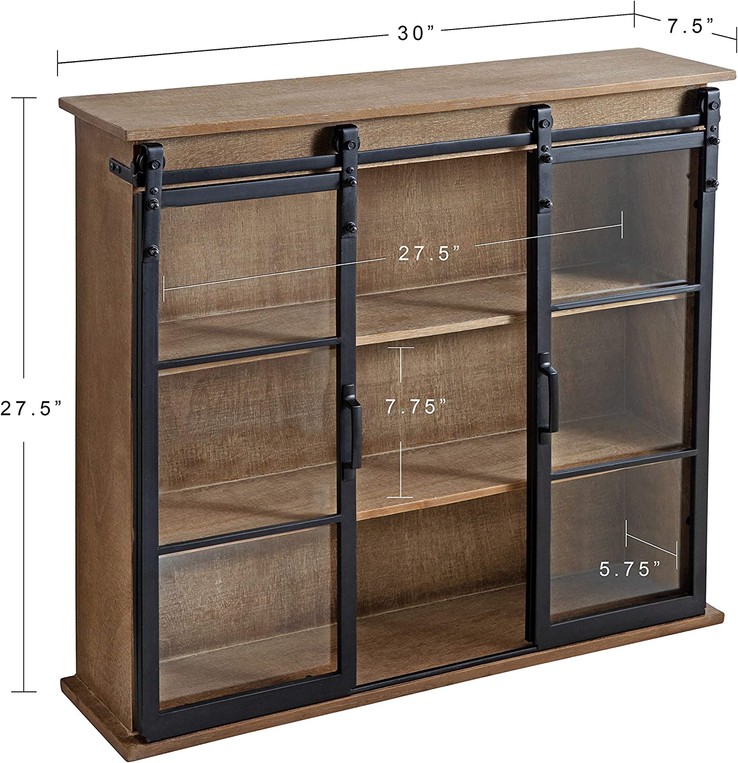 MODERN FARMHOUSE DESIGN: This wall hanging cabinet features a hand-distressed wooden finish and two beautiful metal framed sliding glass doors for the ultimate modern farmhouse accent
