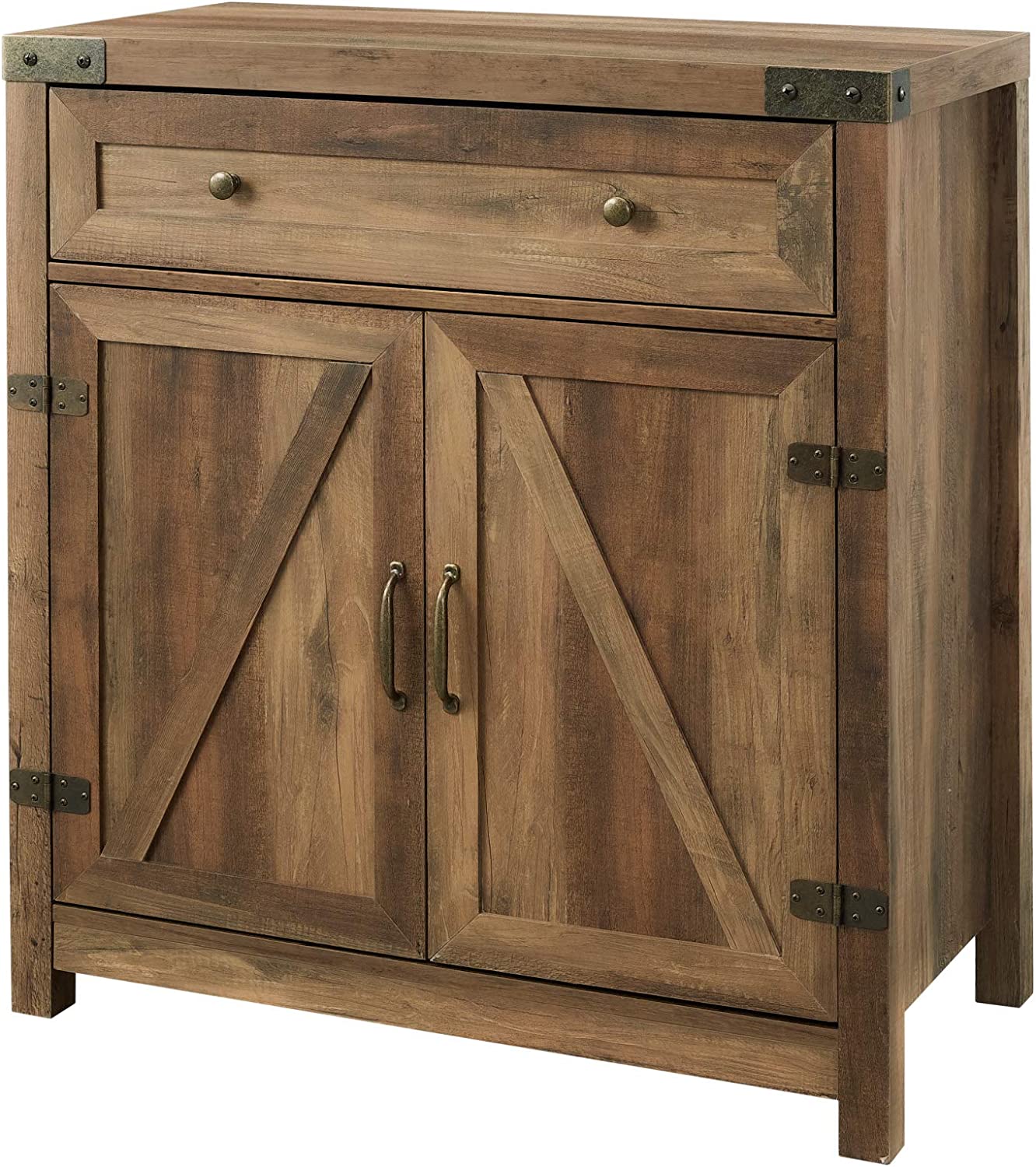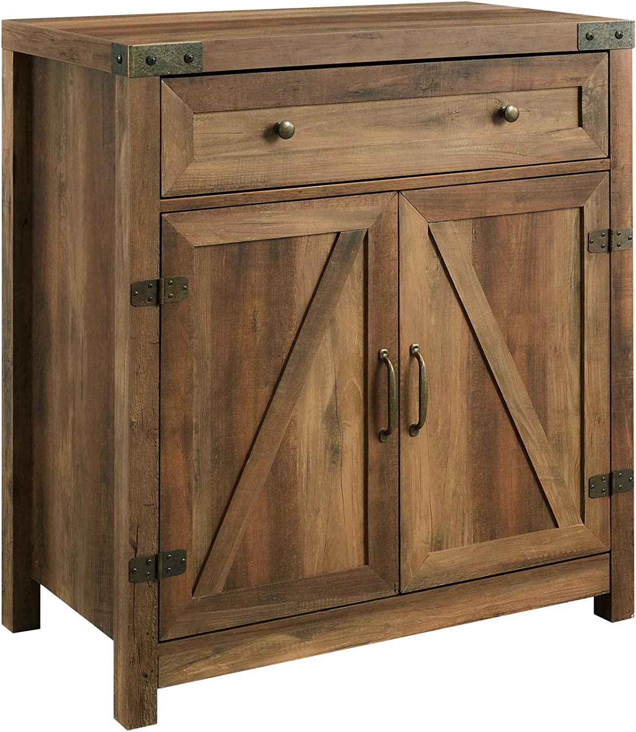 Walker Edison Cass Modern Farmhouse Double Barn Door Accent Cabinet, 30 Inch, Rustic Oak
