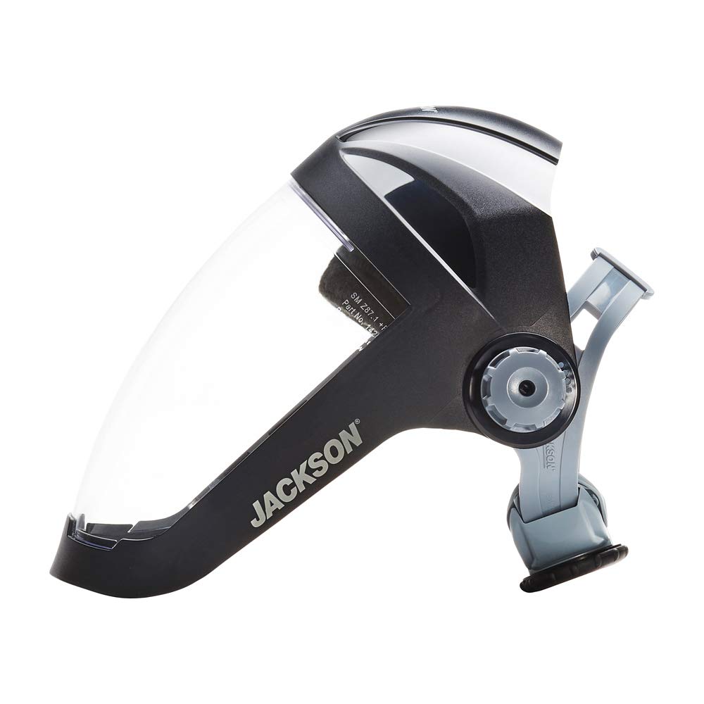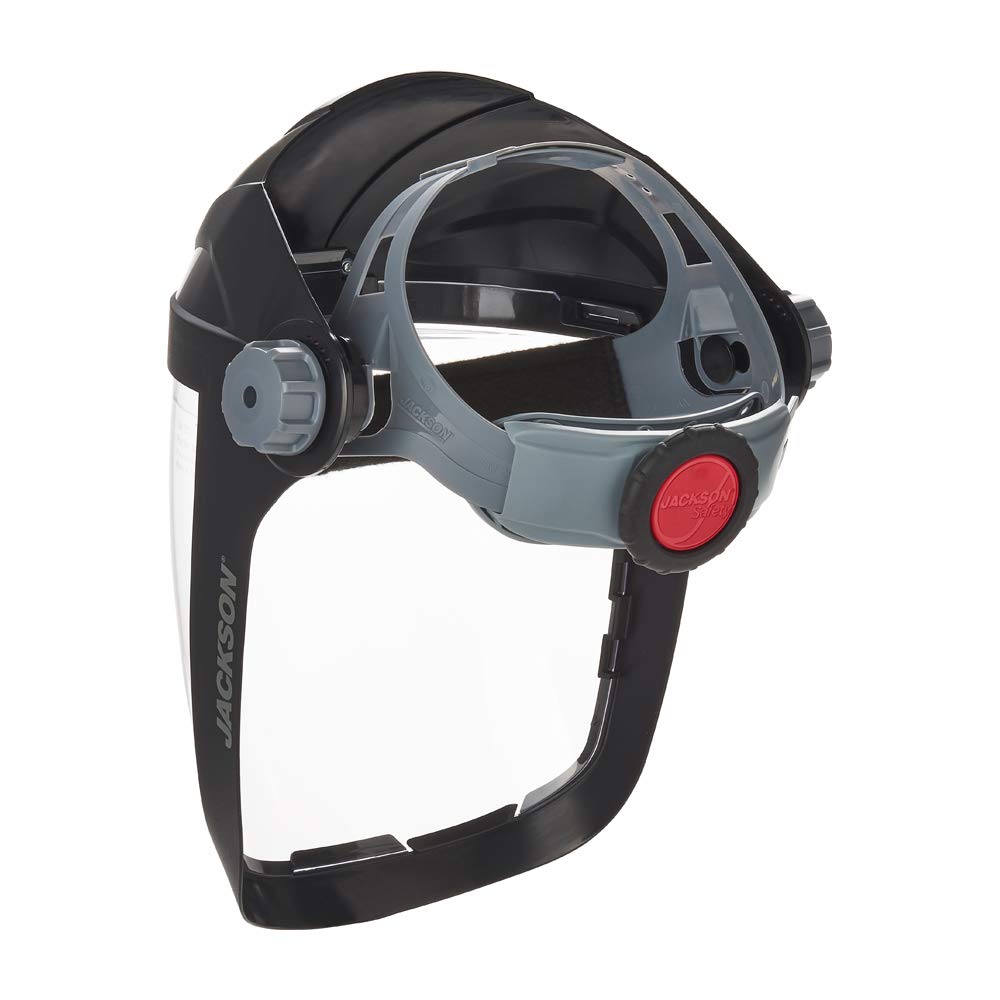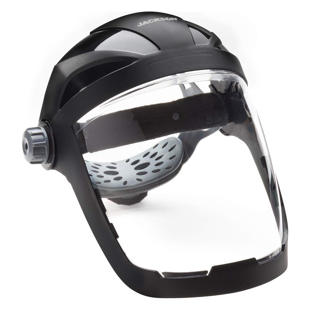 Jackson Safety QUAD500 Face Shield with Ratcheting Headgear, Clear Tint, Anti-Fog Coating, Black, 14220