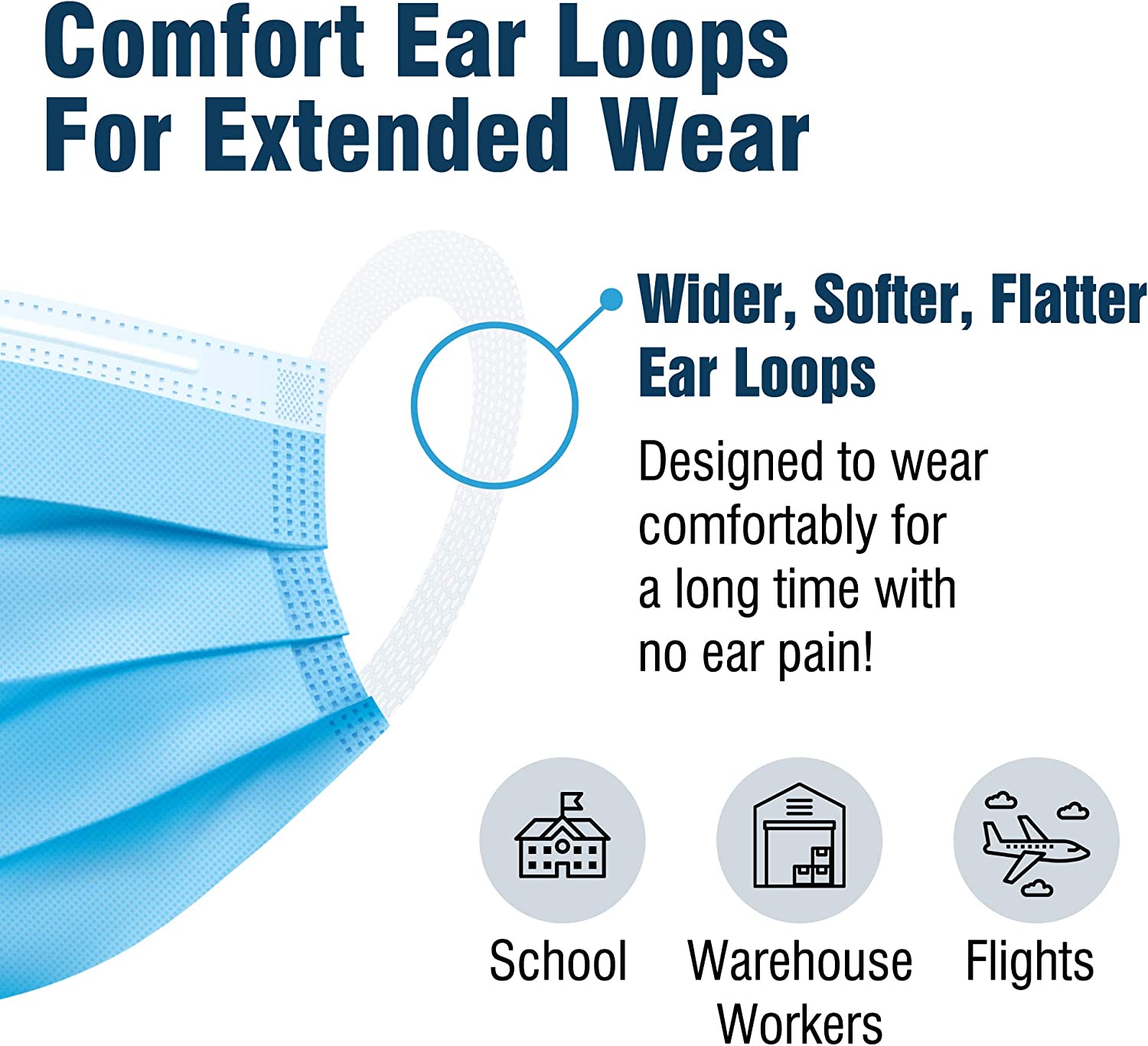 LIGHT & BREATHABLE: Designed for the utmost in comfort, these individual masks are painless and adjustable. They offer full coverage of the nose and mouth and are comfortable for extended wear, including air travel.
