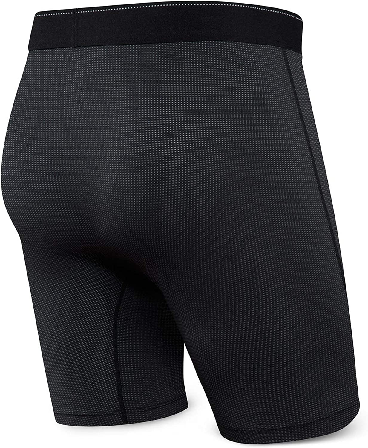 Quest Long Leg Boxer Briefs - Our Quest Long Leg Boxers are perfect for all your travel adventures. Featuring a slim fit and a fly, the Quest long boxer brief sits just above the knee with an 8" inseam. It's made from ultralight, quick-drying, pin-dot mesh fabric for wash-and-go wearability. The digitally printed graphic waistband adds personality to life on the road! BallPark Pouch - Each pair of our boxer briefs comes equipped with the BallPark Pouch. Designed to reduce friction while keeping everything supported and securely in place, this patented pouch technology features breathable fine mesh panels for chafe-free all day comfort. No Rubbing or Chafing - Quest Long Leg Boxer Briefs are constructed from our quick-dry fabric blend of moisture-wicking nylon, spandex, and polyester for all day comfort and support. Designed to keep moisture away from your skin and prevent chafing, the boxer briefs feature Flat Out Seams, which place the softer, flatter side of the underwear seam against skin. The boxer briefs have a Three-D Fit design which builds the underwear from nine panels around the thighs, hamstrings, quads and glutes to support every move you make. Take Action - Quest boxer briefs are an essential addition to any packing list. Pick up a pack of the soft and comfortable lightweight men’s boxer briefs and throw them in your backpack or suitcase – you’re good to go.