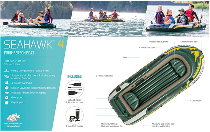 | Included Components | Aluminum Oars, High-Output Air Pump, Boat |
