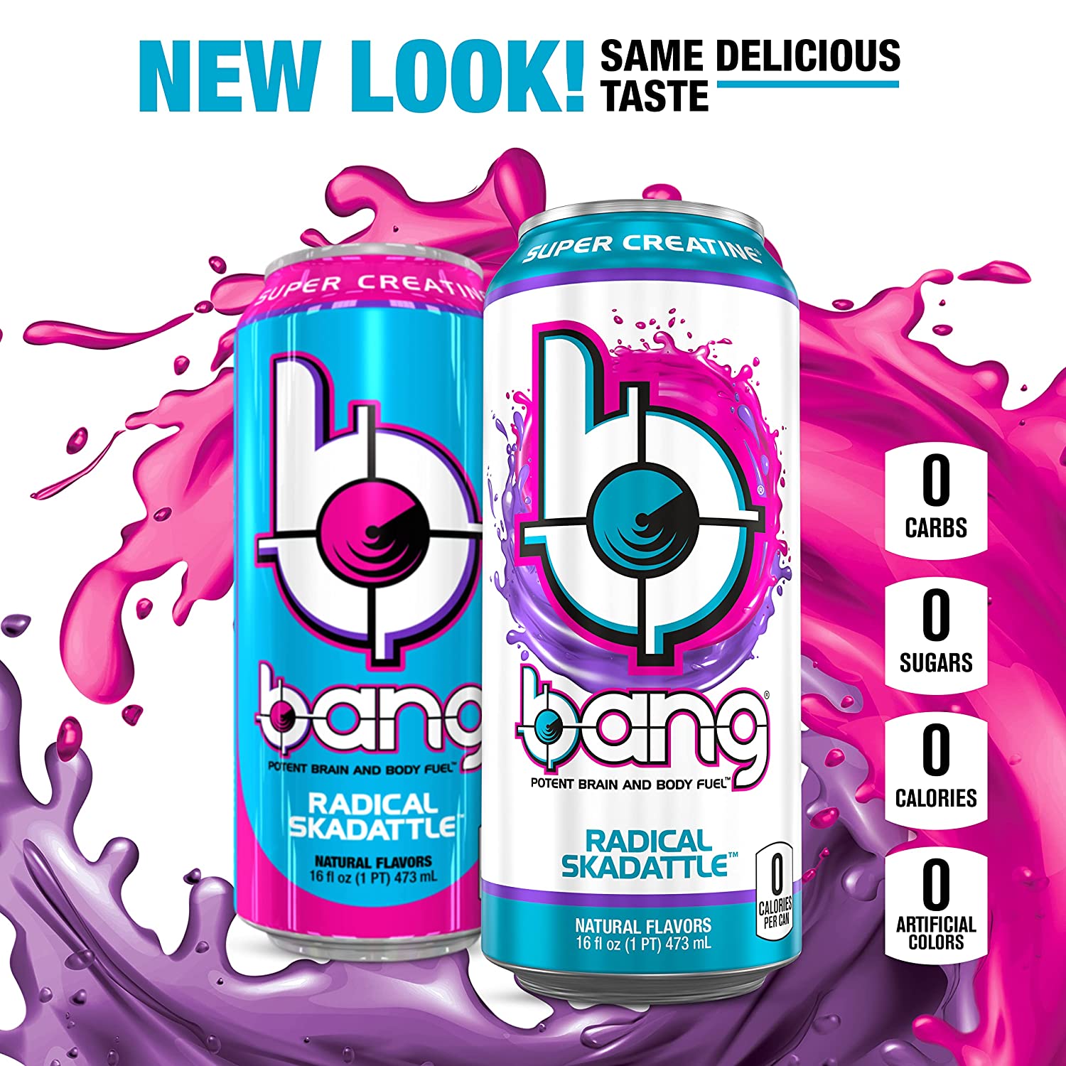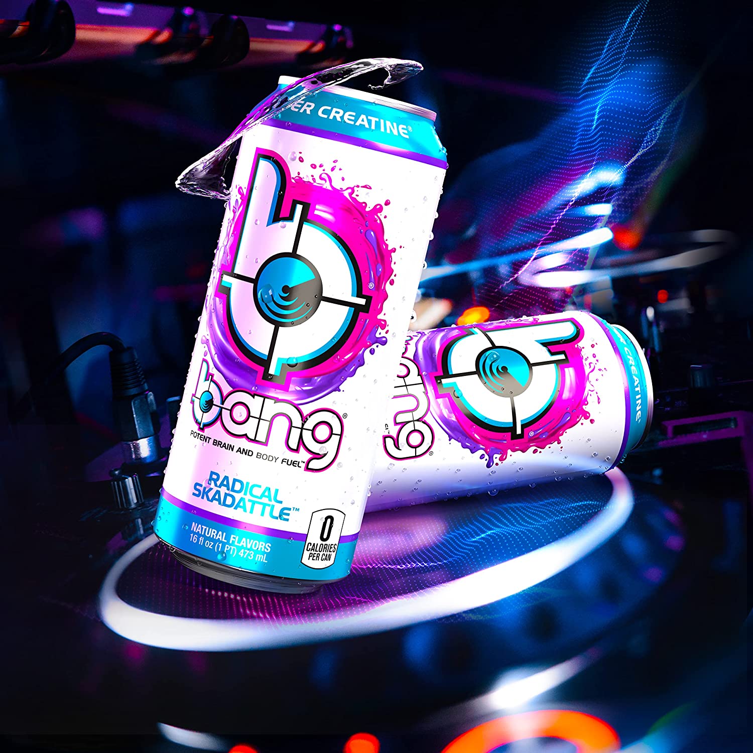 Bang Radical Skadattle Energy Drink, 0 Calories, Sugar Free with Super Creatine, 16 Fl Oz (Pack of 12)