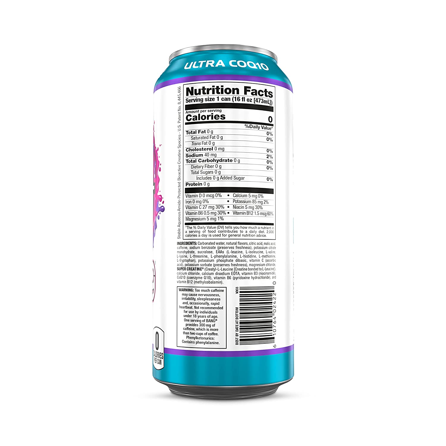 • GLUTEN-FREE AND VEGAN-FRIENDLY: Bang Energy drinks are gluten-free and vegan-friendly, so they are perfect for any lifestyle or diet.