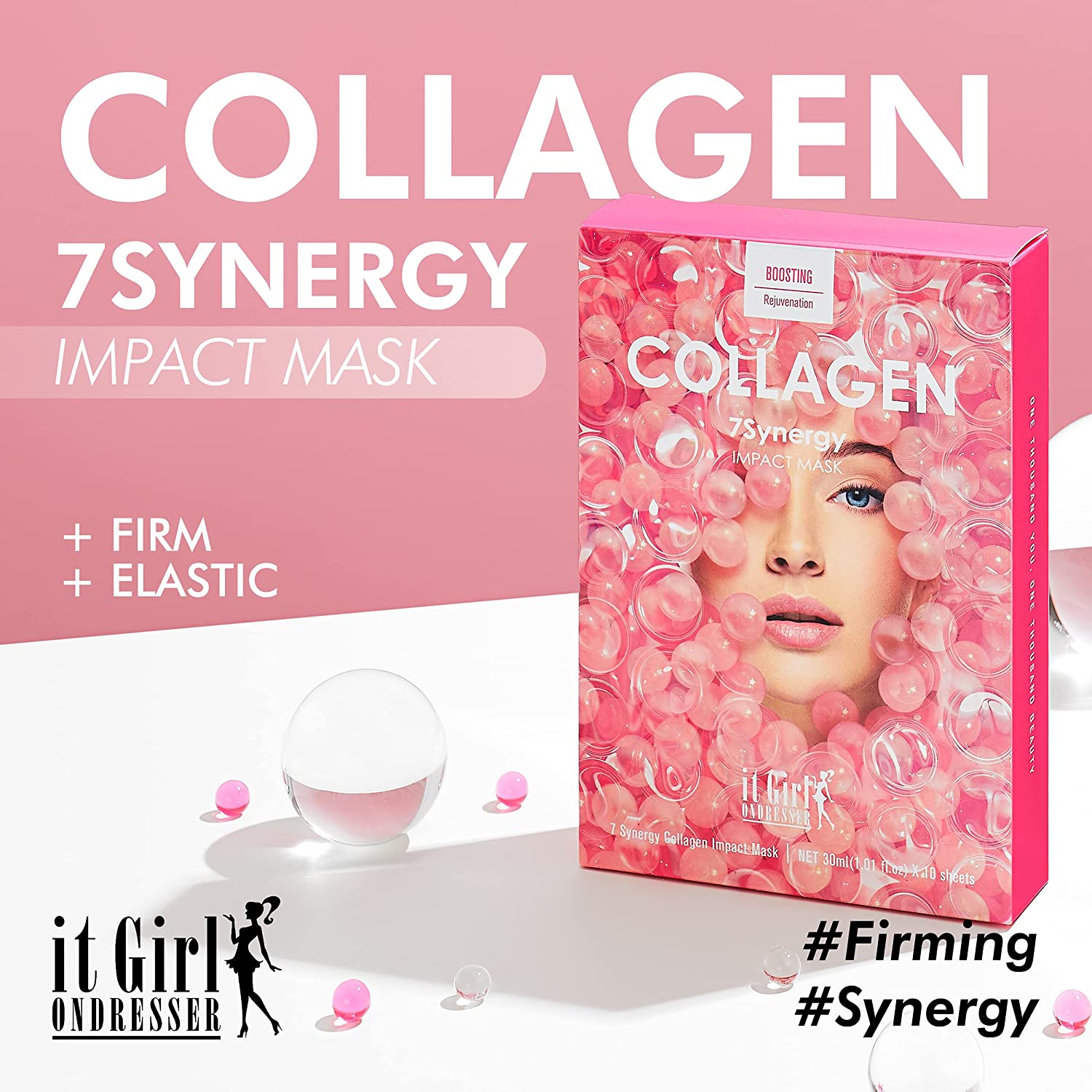 IT GIRL ONDRESSER Collagen Face Mask I Collagen Mask I 7Synergy Boosting Rejuvenation Face Mask I Face Sheet Mask I Korean Face Masks Skincare I Face Mask Beauty Collagen Skin Care Mask | 10 sheets