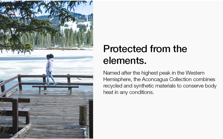 RECYCLED DOWN INSULATION. Take on the cold with superior warmth thanks to 550 fill goose down. Including 150 grams of Heatseeker Eco 70%-recycled polyester insulation in the hood, yoke, underarms and pockets, you'll easily stay warm — even in wet weather.