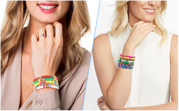 For beach jewelry, we love a mix color of effortless layering bracelets.